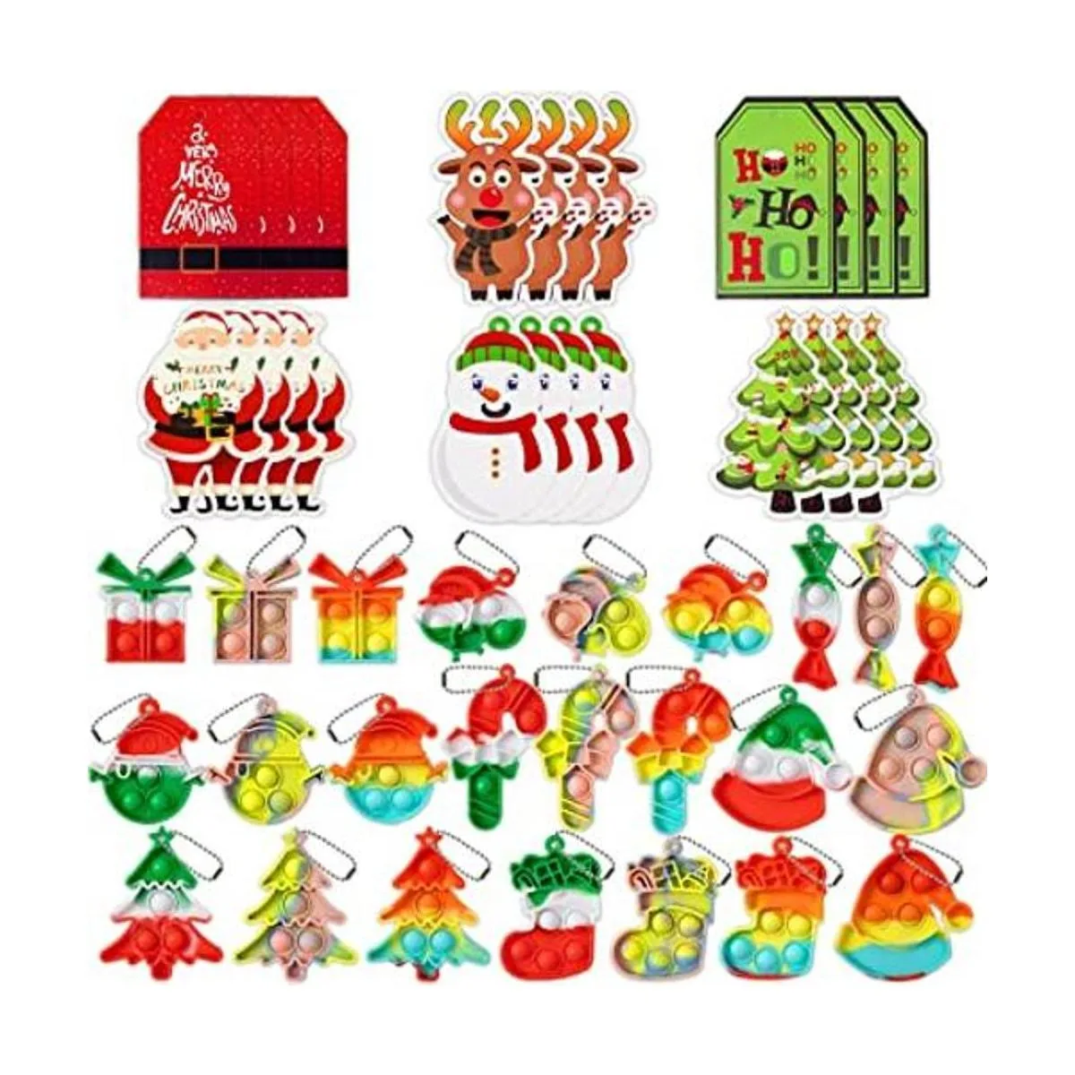 Recuerdos de fiesta de Navidad para niños, paquete de 24 mini llavero para ansiedad con tarjetas de regalo para niños pequeños, regalos de aula, regalos de Navidad, regalos de Navidad