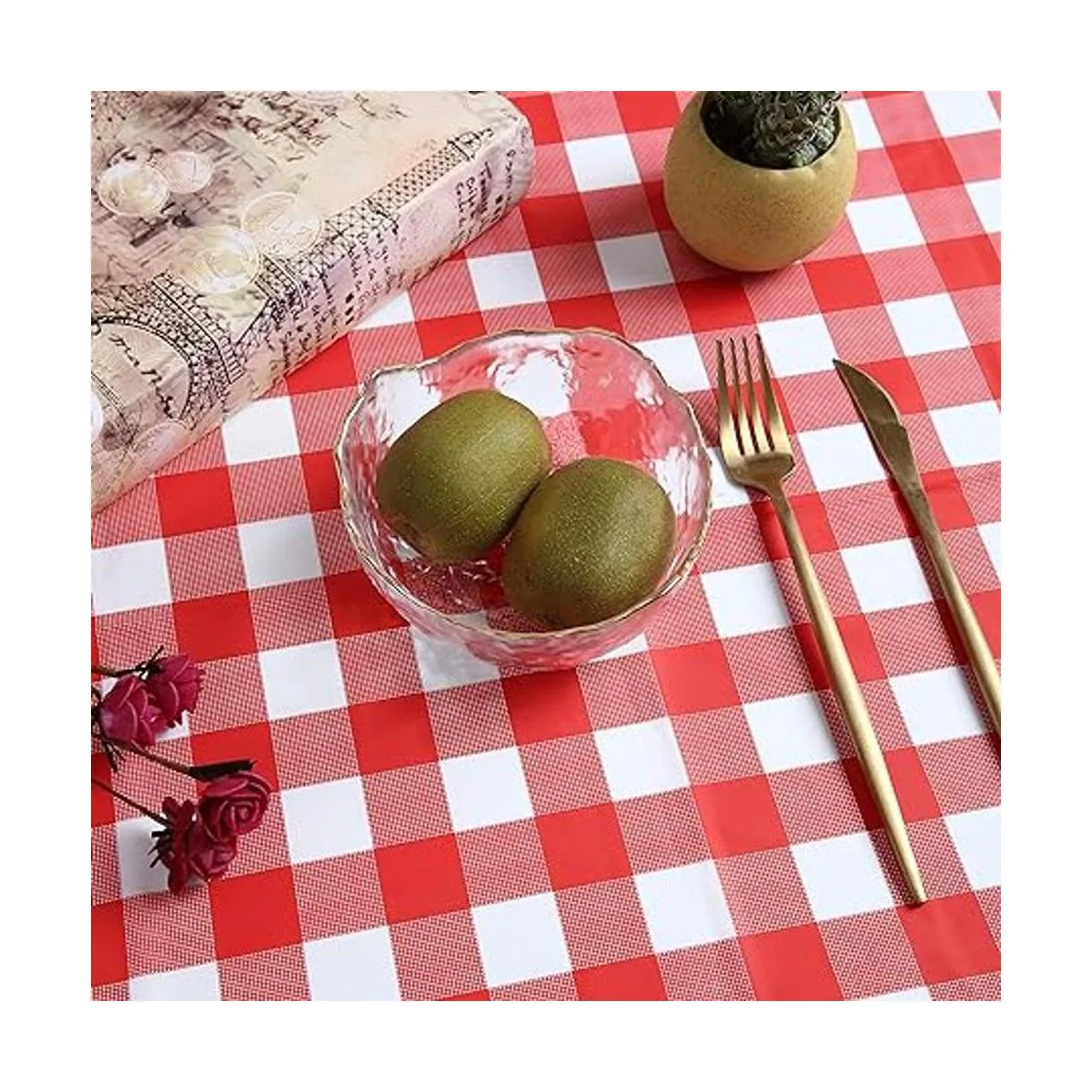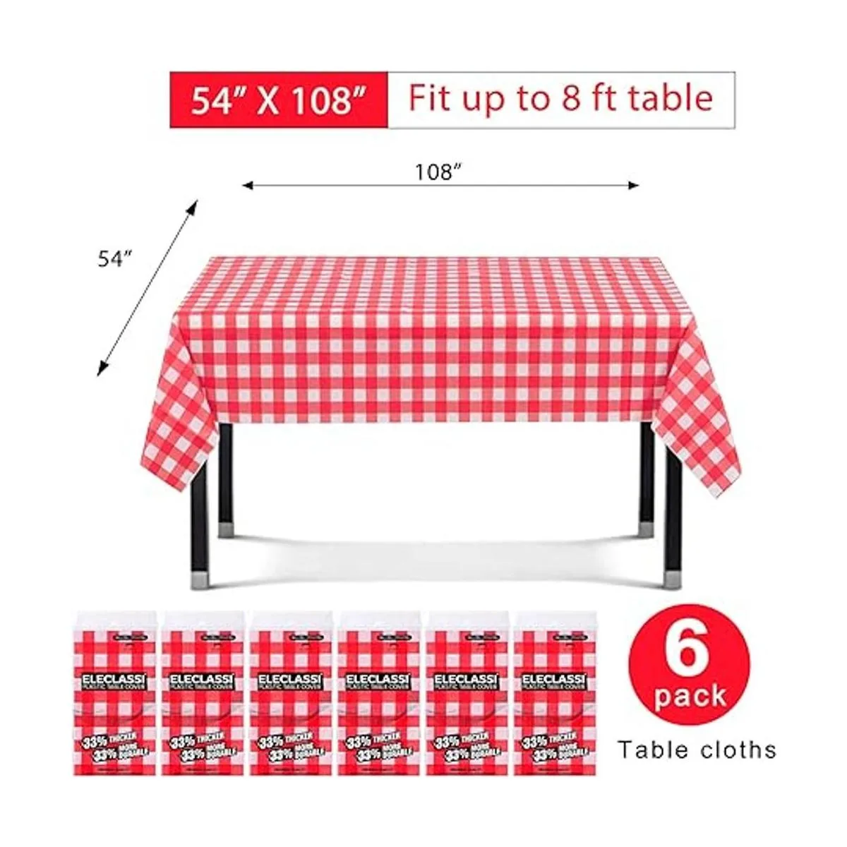 Red Gingham Paquete de 6 manteles de plástico desechables de 54 x 108 pulgadas, manteles de plástico para fiestas, mantel desechable para mesa rectangular de 8 pies, mantel rectangular a cuadros rojos