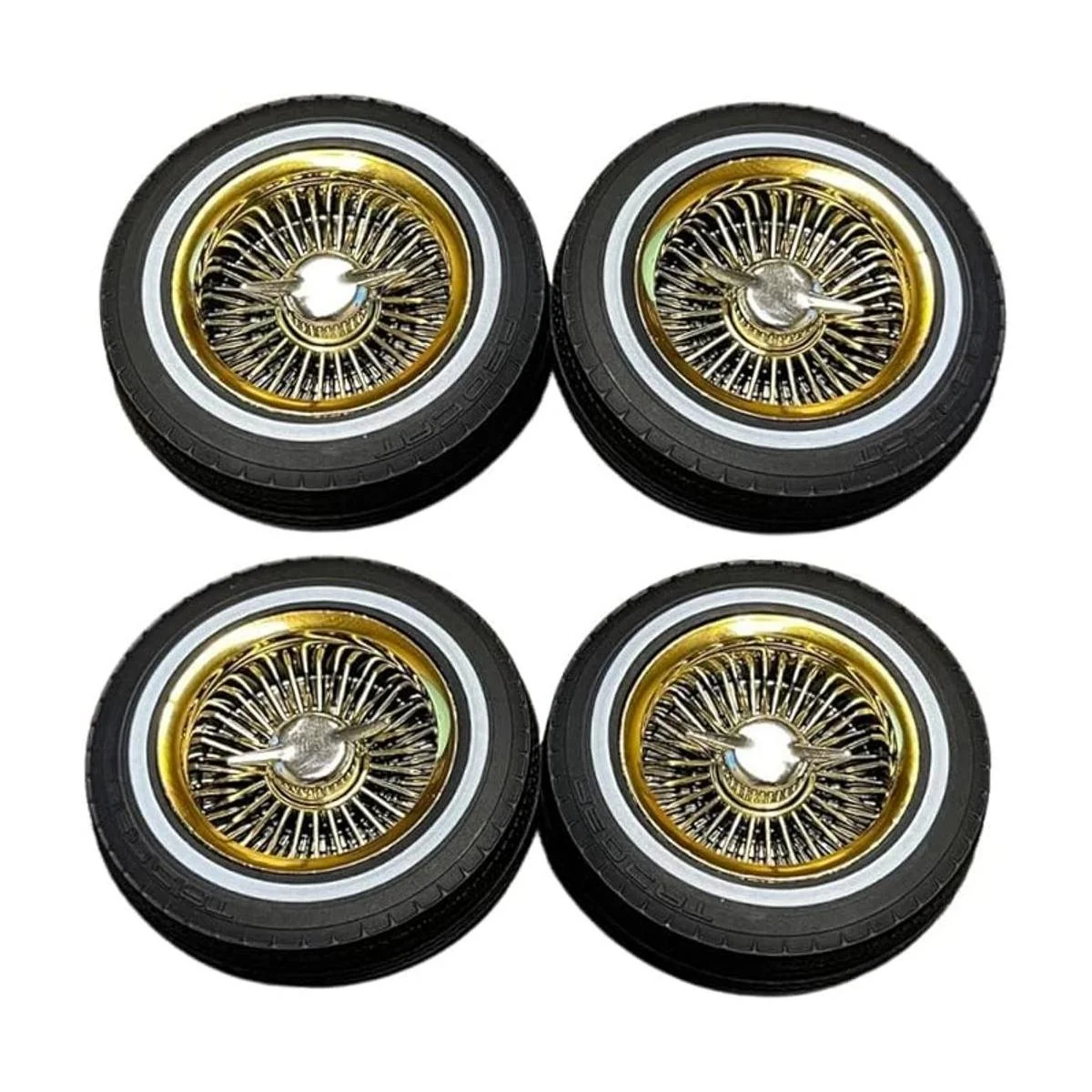 Redcat Whitewall Neumáticos de perfil bajo y ruedas doradas con golpes y tuercas de rueda RER14434