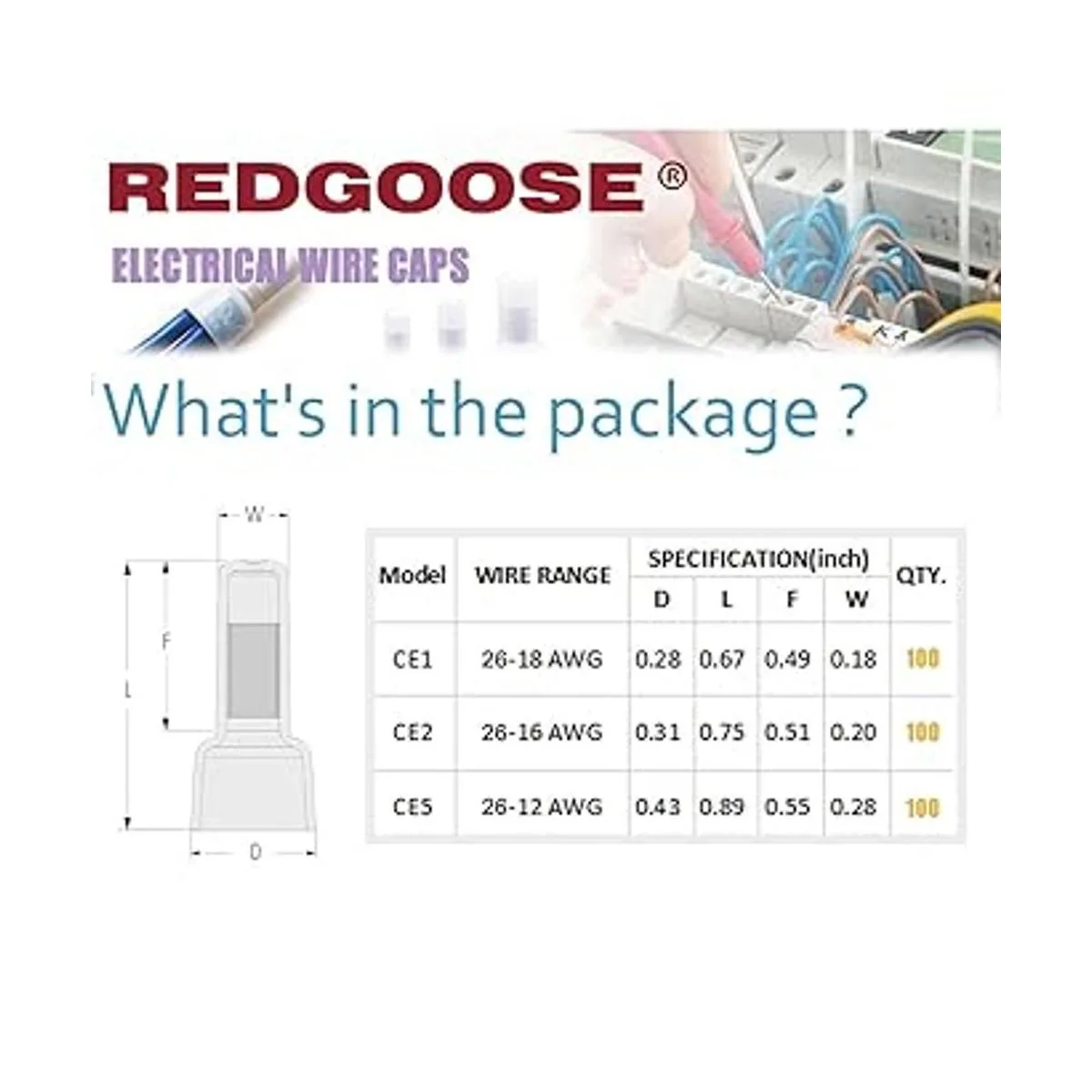 REDGOOSE 300 conectores de crimpado de extremo cerrado de 2612 AWG, conectores de alambre de nailon, terminales de alambre de tapa de crimpado 2618AWG 100 unidades, 2616AWG 100 unidades, 2612AWG 100 unidades