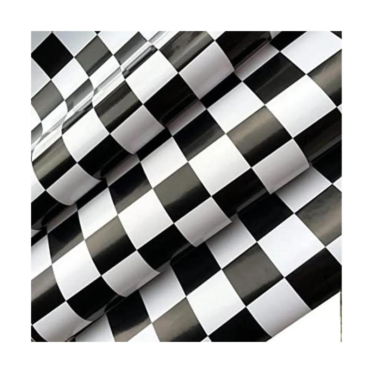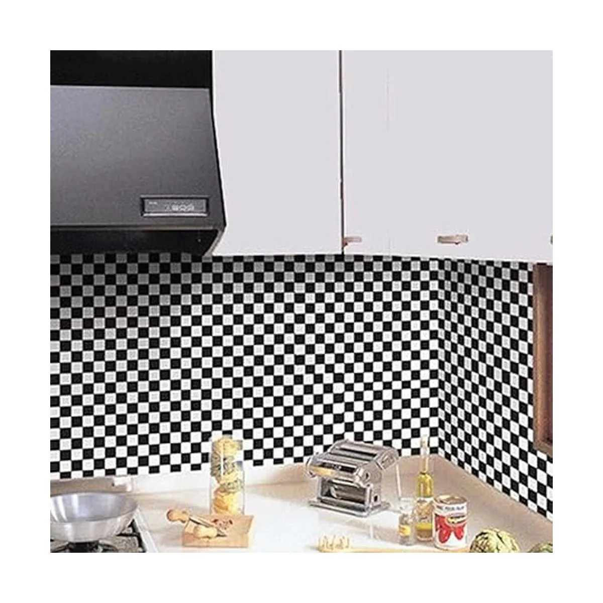 Redodeco Adhesivo Blanco Negro Mosaico Backsplash Azulejos Película de vinilo brillante Cocina Encimera Stick Papel Papel pintado Estanterías 17.7inx100inch Roll