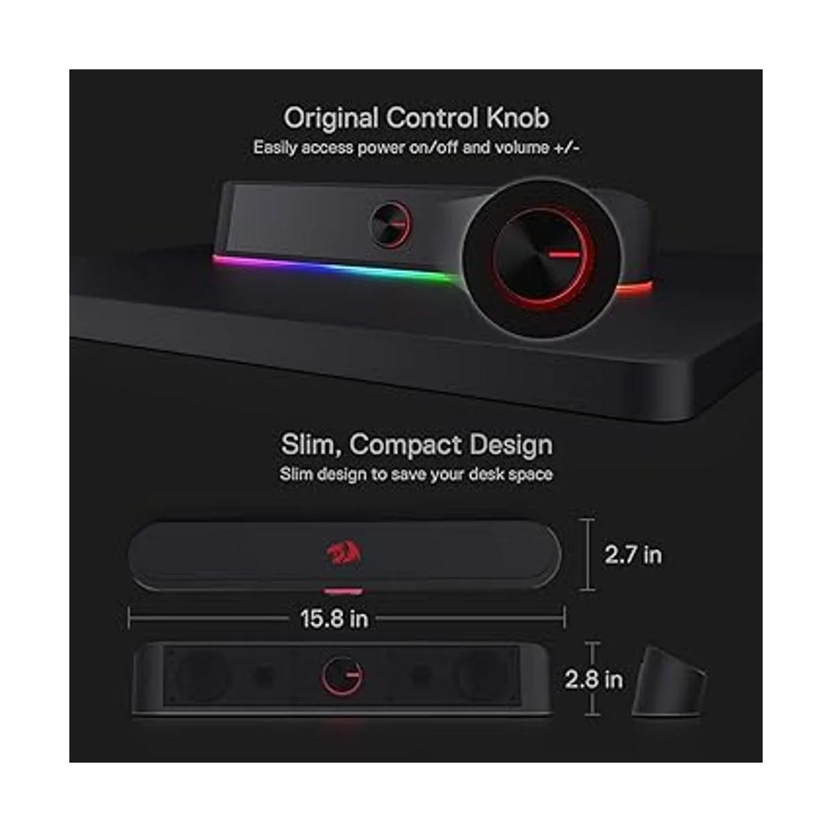 Redragon GS560 Adiemus RGB Barra de sonido de escritorio, altavoz de computadora de 2.0 canales con barra de iluminación dinámica, sincronización de luz de audiopantalla, control táctil retroiluminado con perilla de volumen, alimentación USB con cable de 0.138 in