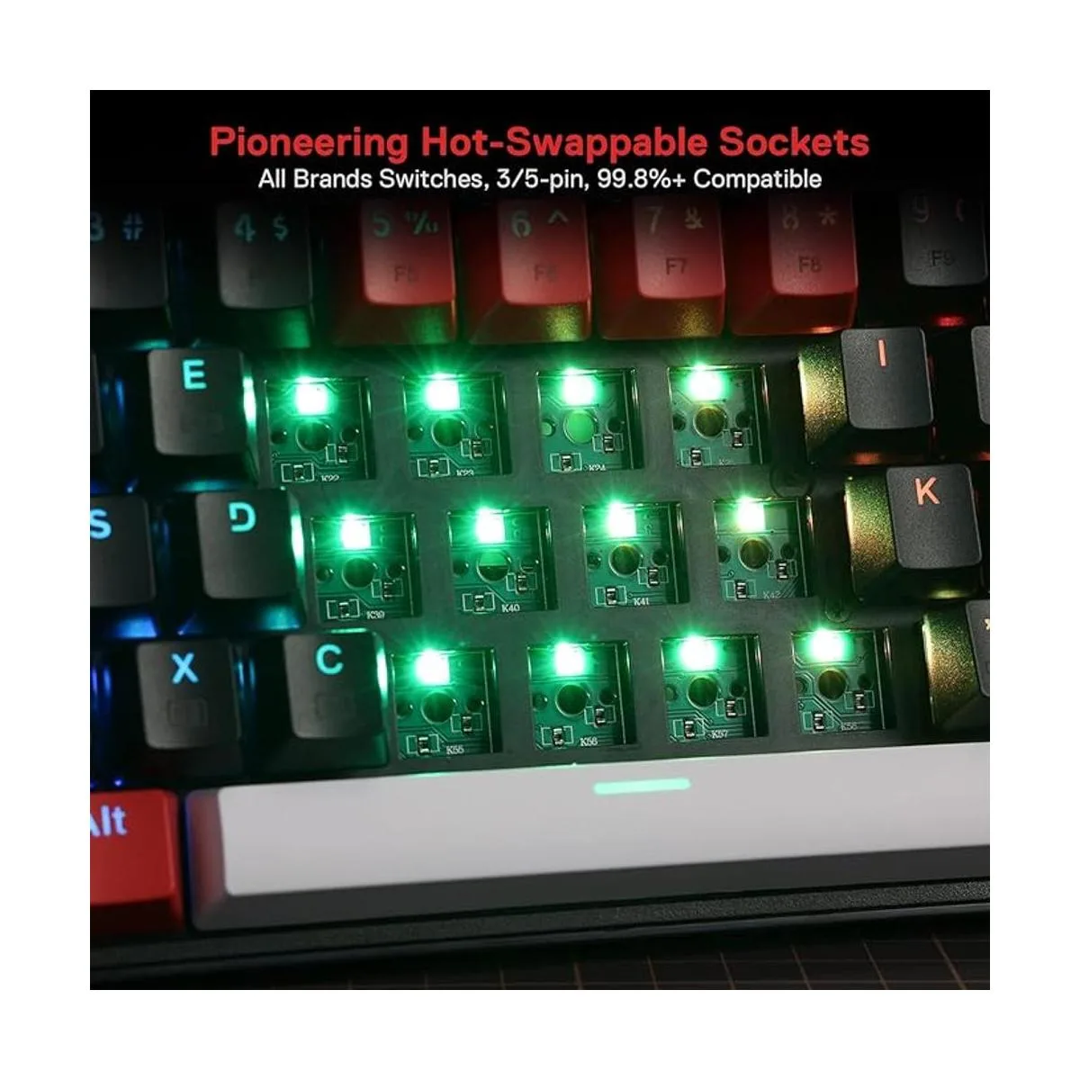 Redragon K628 PRO Teclado inalámbrico RGB para juegos de 75 de 3 modos, 78 teclas, teclado mecánico compacto intercambiable en caliente con toma de PCB de modo gratuito de intercambio en caliente, teclas de flecha y numpad, interruptor rojo
