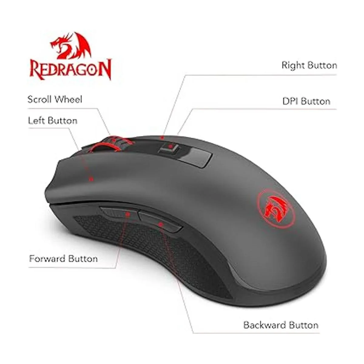 Redragon M652 Mouse inalámbrico óptico de 2.4G con receptor USB, mouse portátil para juegos y oficina, 5 niveles de DPI ajustables, 6 botones para escritorio, MacBook, laptop, PC, laptop, computadora