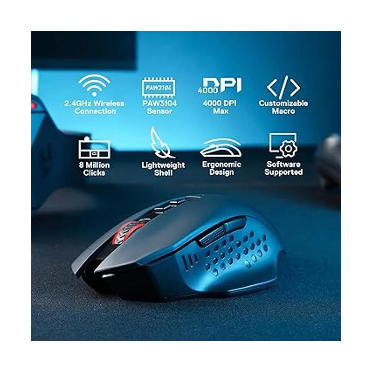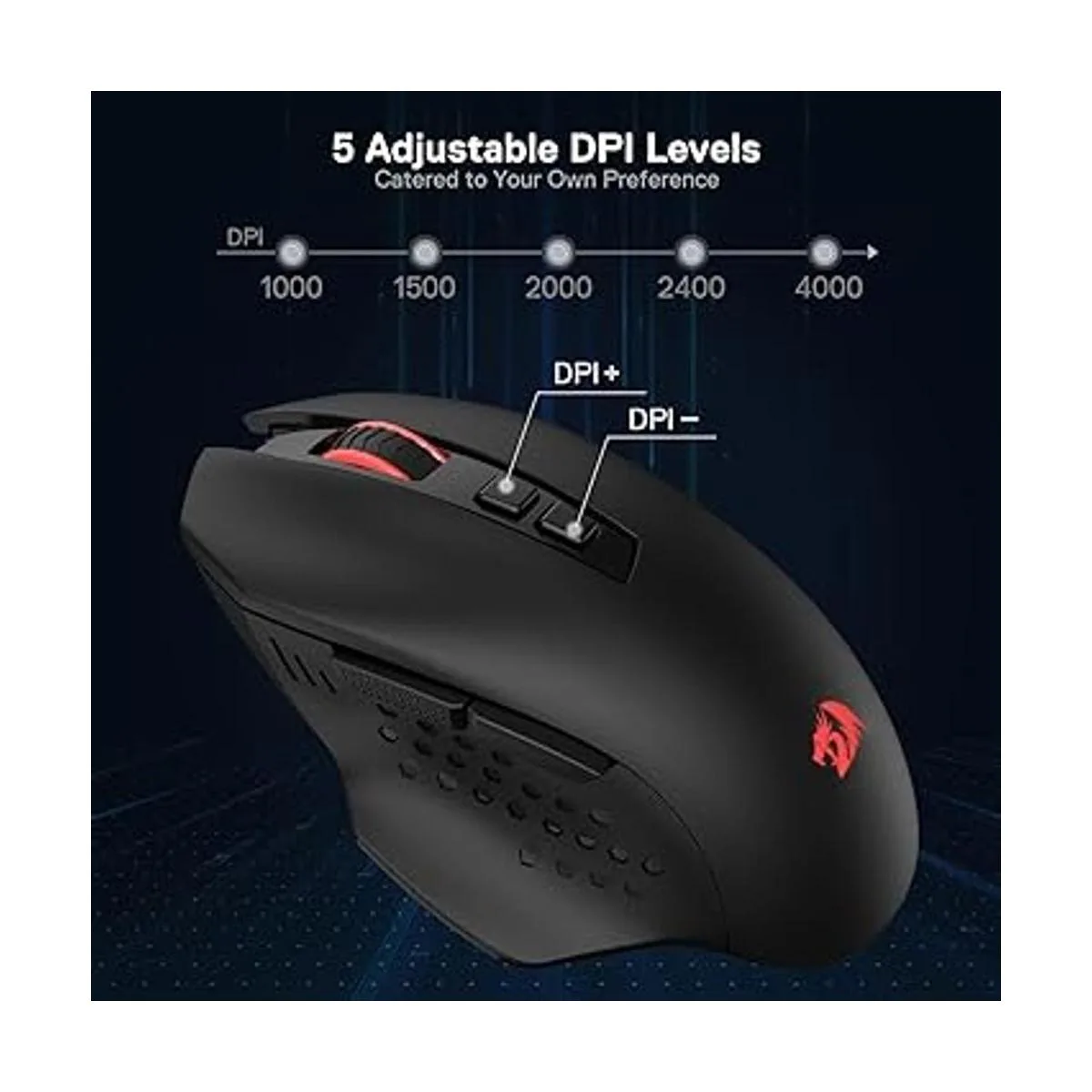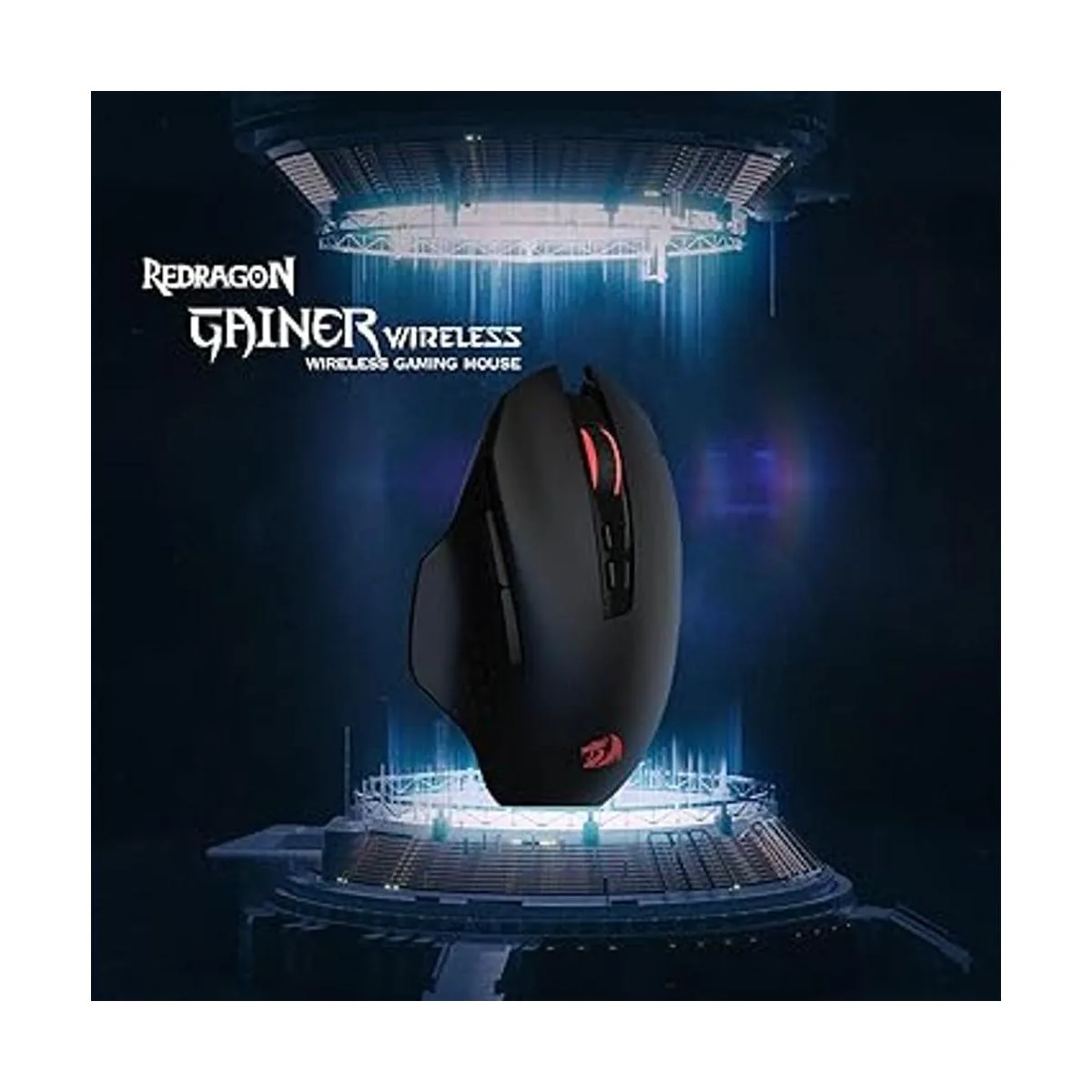 Redragon M656 Gainer Mouse inalámbrico para juegos, 4000 DPI 2.4 GHz inalámbrico con 5 niveles de DPI, 7 botones macro, retroiluminación LED roja y compatible con softwareunidad profesional, para PCMaclaptop
