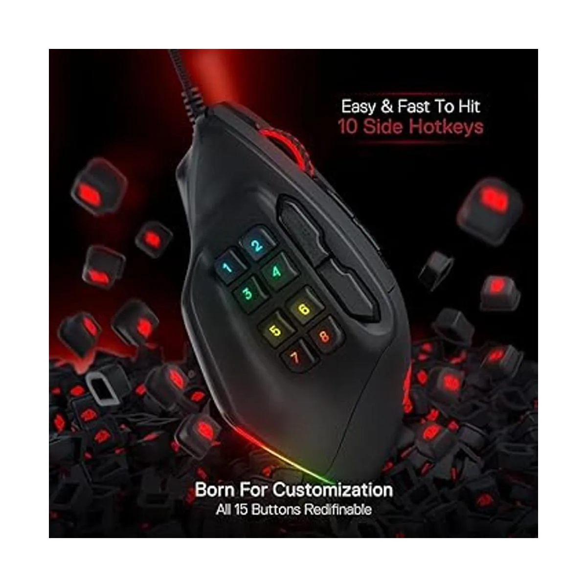 Toma el disparo avanzado: 15 botones programables son editables con teclas tácticas personalizables en cualquier juego o trabajo que estés comprometiendo. Los botones laterales MMO predeterminados de 2 8 épicos te cubrirán a todos, pulsa tus teclas de acceso rápido más rápido que nunca con M811.