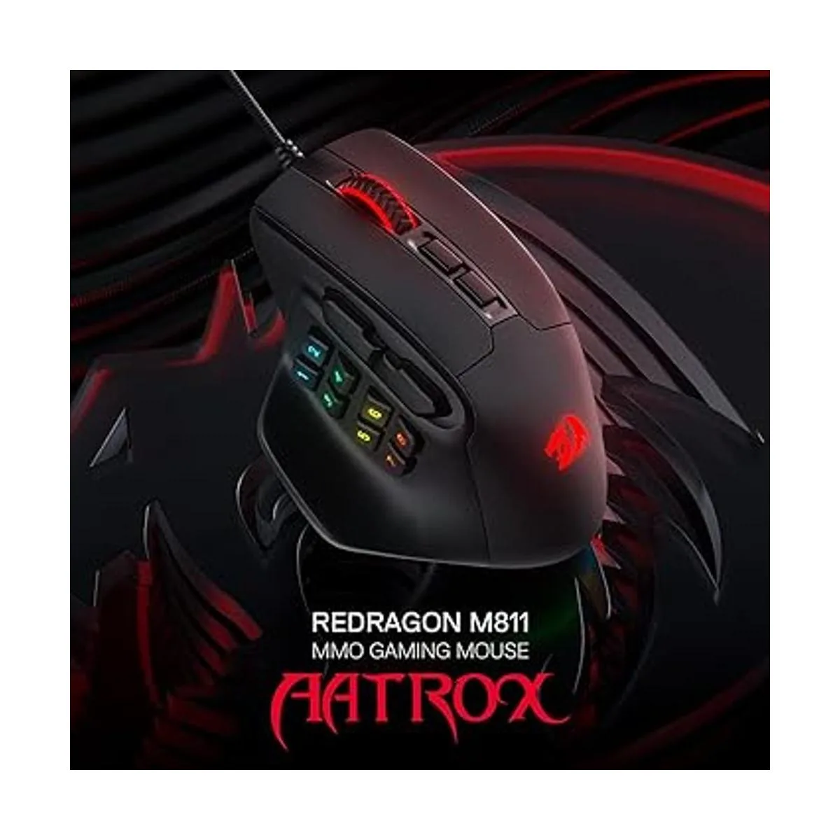 Redragon M811 Aatrox MMO Mouse para juegos, 15 botones programables con cable RGB gamer mouse con construcción ergonómica de agarre natural, 10 teclas macro laterales, software compatible con llaves de bricolaje y retroiluminación