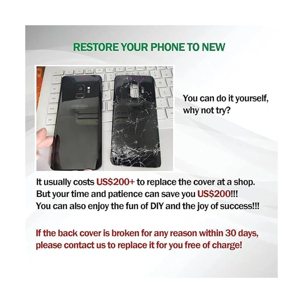 Fácil instalación y ahorra dinero Reemplazo de ajuste 100 perfecto. La carcasa de la puerta trasera de cristal para Galaxy S9 viene con lente de marco de cámara preinstalada, adhesivo preinstalado y kit de herramientas de reparación. El manual de instrucciones paso a paso está incluido para que puedas instalarlo fácilmente. Disfruta de la diversión del bricolaje. Ahorra dinero comprando nuevas piezas de reparación de puertas de carcasa de vidrio para Galaxy S9 y haciendo la reparación en casa Restaura el dispositivo de nuevo a nuevo