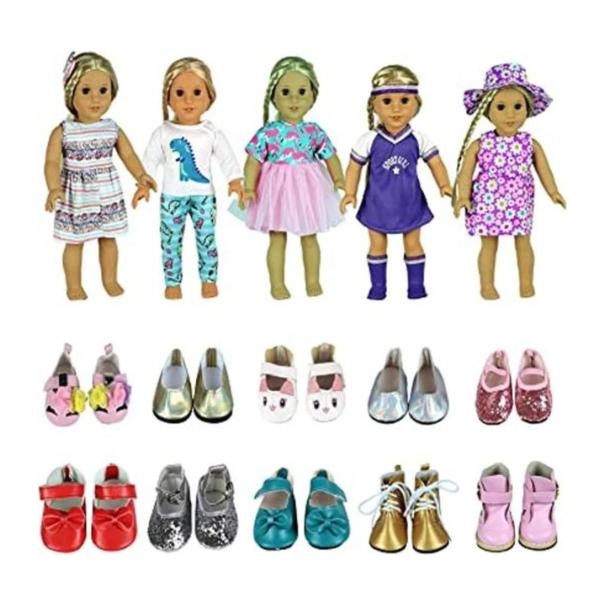 Varios estilos: 5 estilos diferentes de ropa de moda hecha a mano con zapatos de alta calidad para todas las muñecas de 18 pulgadas como las muñecas American Girl son perfectos para atuendos casuales diarios y fiestas.