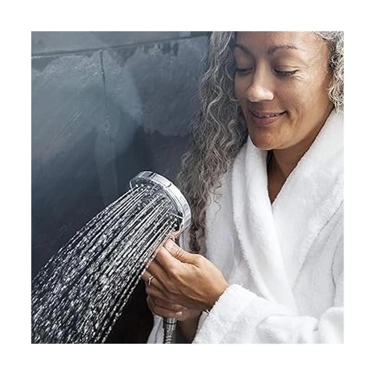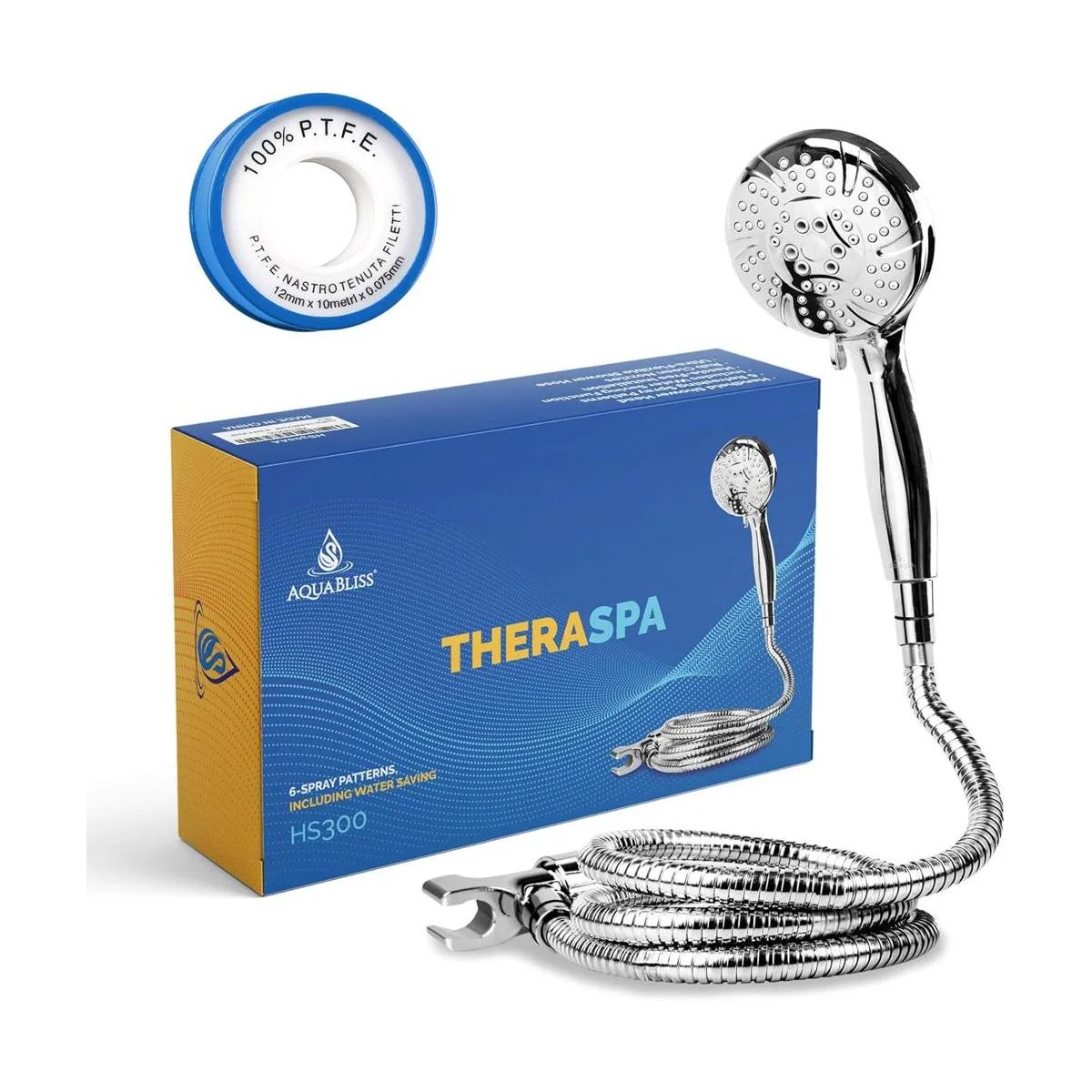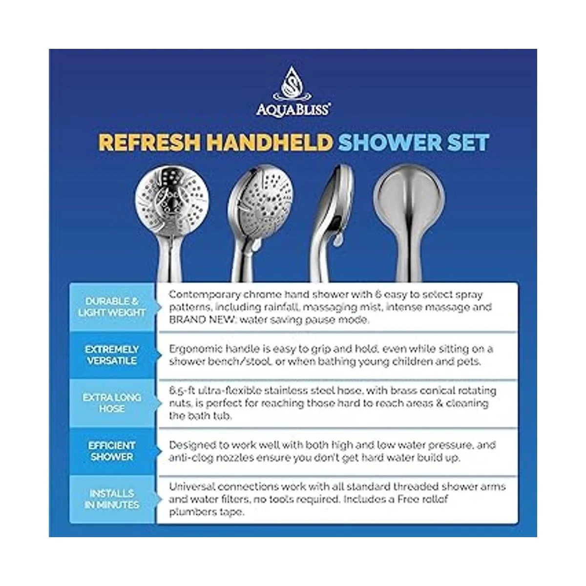 Regadera de mano Aquabliss alta presión 6 configuraciones con Modo pausa de ahorro de agua extra largo ultra flexible manguera de acero inoxidable montura de regadera ajustable cromo