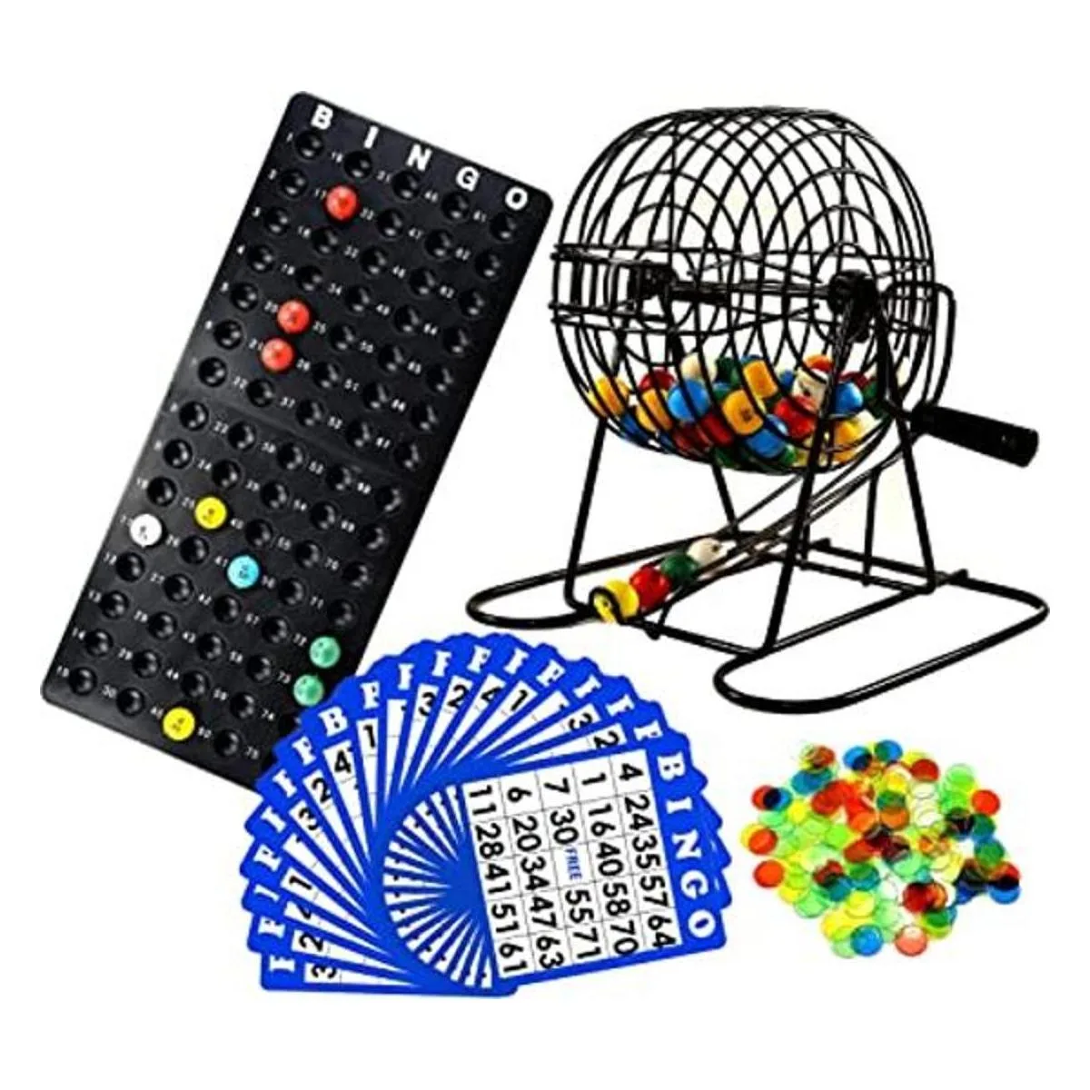 Juego de bingo de lujo: este juego de bingo de lujo Regal Game tiene todo lo que necesitas para jugar el juego perfecto de bingo. Incluye una jaula de bingo giratoria de acero de 8 pulgadas, una tabla maestra, 75 bolas de bingo multicolor, 50 tarjetas de bingo impresas grandes y fichas de bingo coloridas. Es un regalo divertido y único para familiares y amigos para cumpleaños, Navidad, Pascua, Acción de Gracias, Año Nuevo y todas las demás ocasiones especiales.