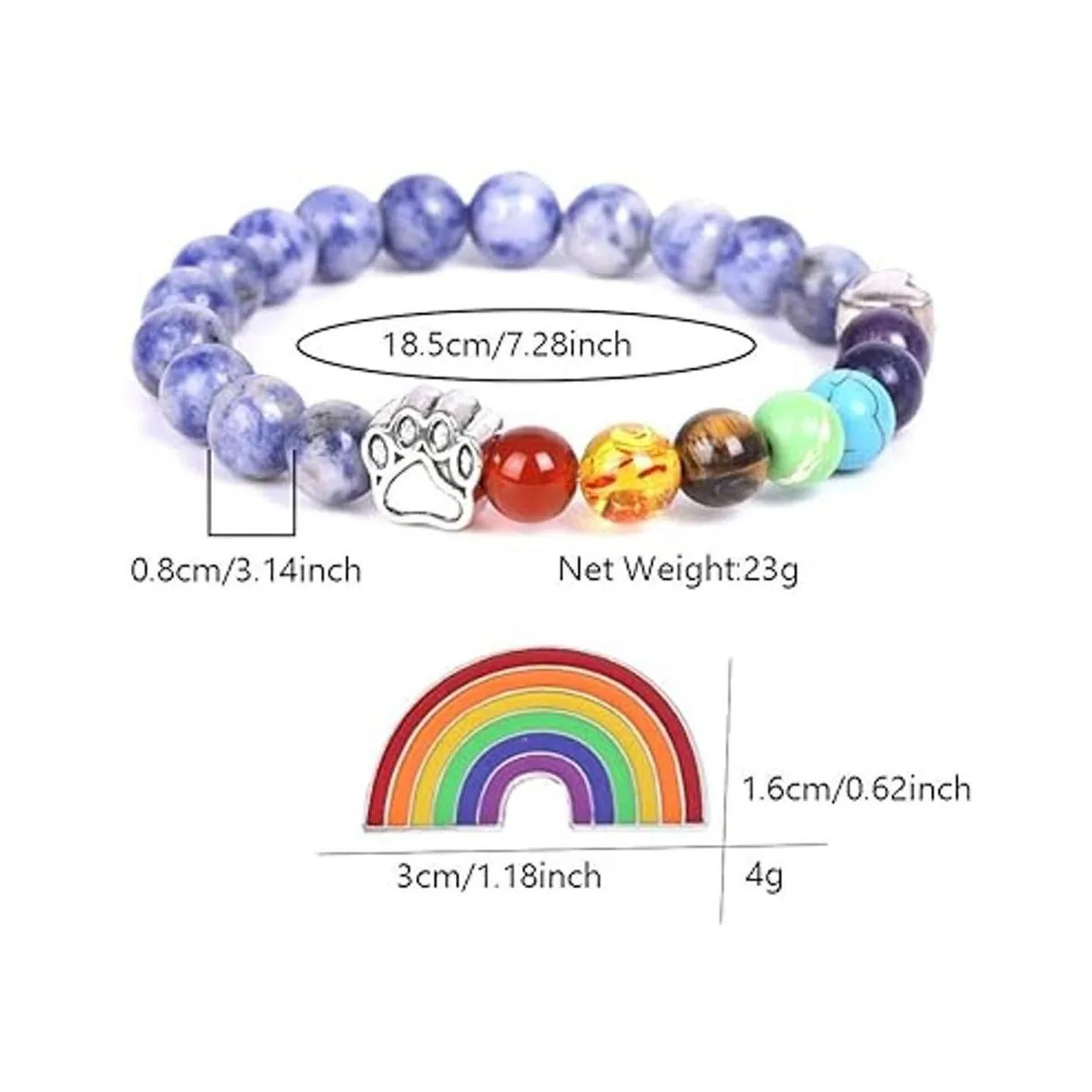Regalos conmemorativos para mascotas, pulsera de puente de arcoíris para ser querido perro y gato, pulsera conmemorativa de 7 chakras para mujeres y hombres que pierden mascotas, regalo de condolencias para mascotas