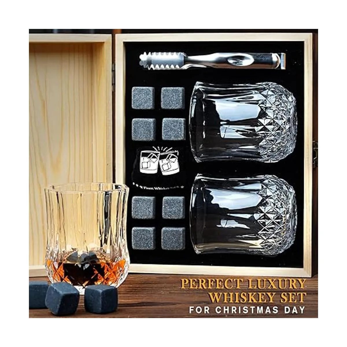 Regalos de cumpleaños para hombres, piedras de whisky, juego de regalos refrescantes con vasos de whisky, regalo para aniversario, Navidad para papá, él, marido, novio, hermano, juego de cóctel escocés de Bourbon