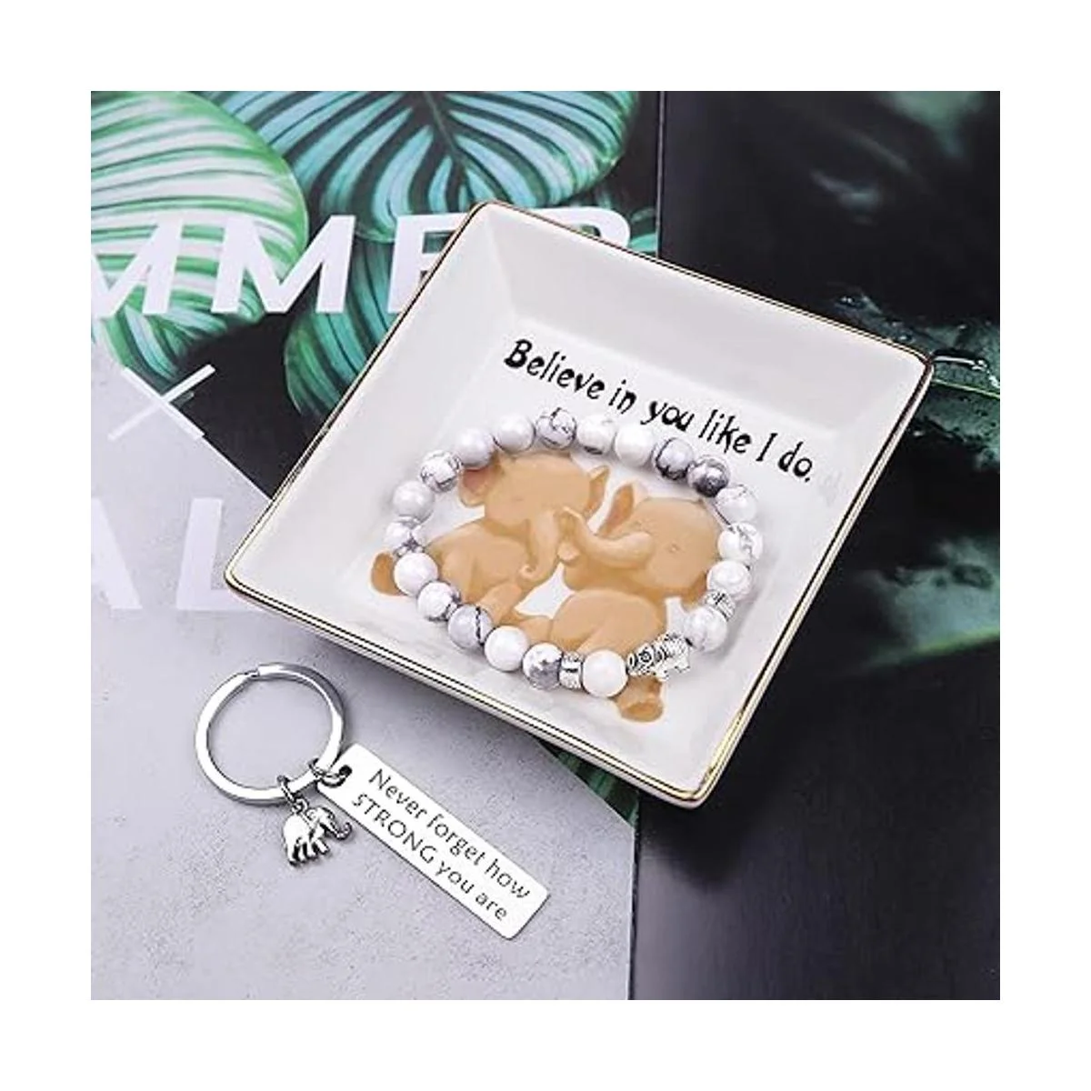 Valor por dinero: 10 cestas de regalo de elefante por valor de 126.75, ahora solo necesita 39.99, ahorras 86.76. Esta caja de regalo de elefante llena de bonitos regalos incluye principalmente un divertido vaso de vino, pulsera de elefante, plato de joyería, calcetines, bolsa de maquillaje y llavero. Cada artículo es cuidadosamente seleccionado para los amantes de los elefantes, que es una gran opción de regalo de elefantes, especialmente cuando no tienes ninguna idea. No puedes esperar a pedir ahora y verla recibir esta caja de regalo muy feliz.