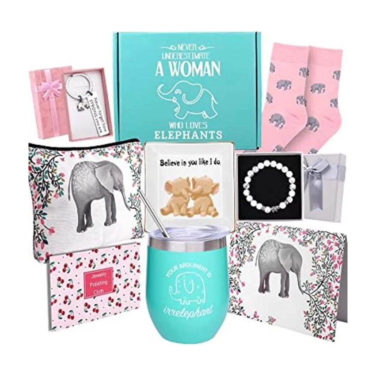 Regalos de elefante para mujer, regalos de cumpleaños para amantes de los elefantes, regalos de elefante para boda, Acción de Gracias, Navidad, Día de la Madre, vaso de vino divertido, pulsera de elefante, llavero, plato de joyería, bolsa, calcetines