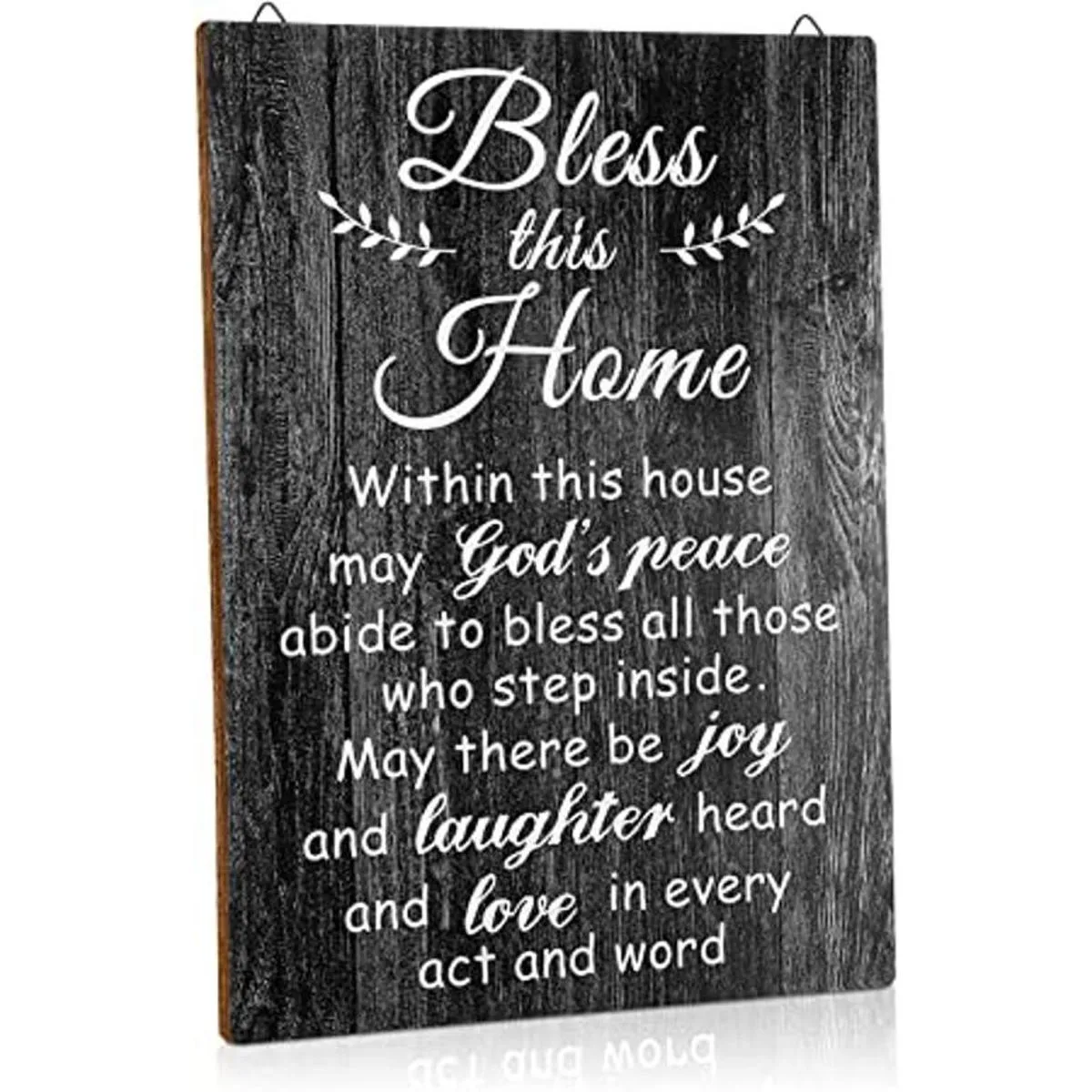 Añade calidez: bendiga este letrero colgante de madera para el hogar con diseño de fondo rústico que se ve limpio y elegante, se puede colgar en muchos lugares, como paredes, puertas, estantes, cocinas, comedores, salas de almacenamiento, oficinas, jardines, etc., puede traer elegancia y sentido artístico a tu hogar, fácil de combinar con otras decoraciones del hogar; las palabras cálidas impresas en el cartel expresan la bendición a tu querida familia