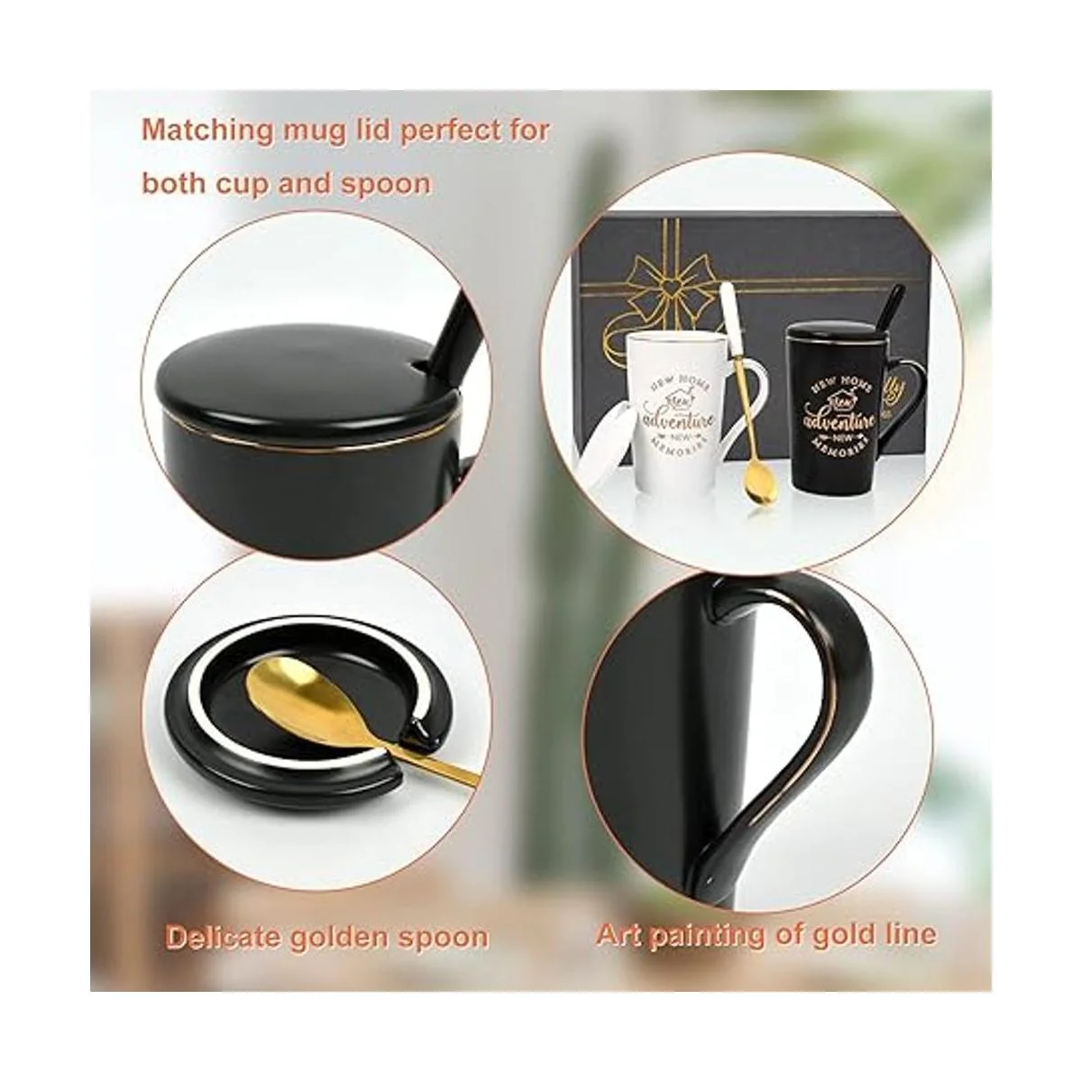 Excelente paquete de caja de regalo: este nuevo regalo de inauguración de la casa viene en una exquisita caja de regalo, por lo que no necesitas envoltura de regalo adicional o caja de regalo. El juego de tazas también viene con dos bonitas tapas para mantener las bebidas calientes y dos cucharas delicadas para un mejor uso. A los nuevos propietarios de casas les encantará este considerado regalo y disfrutarán de su café matutino con alegría todos los días.