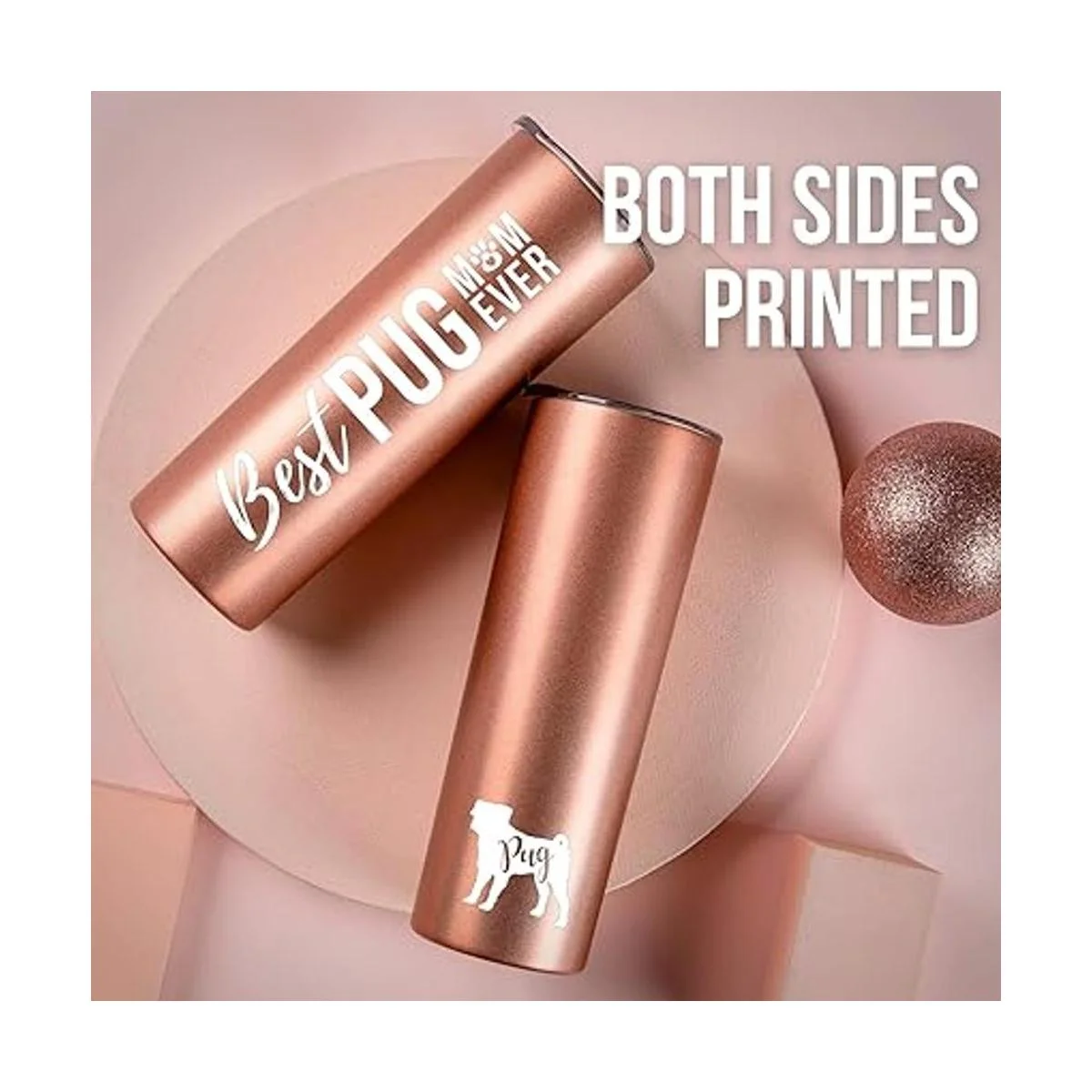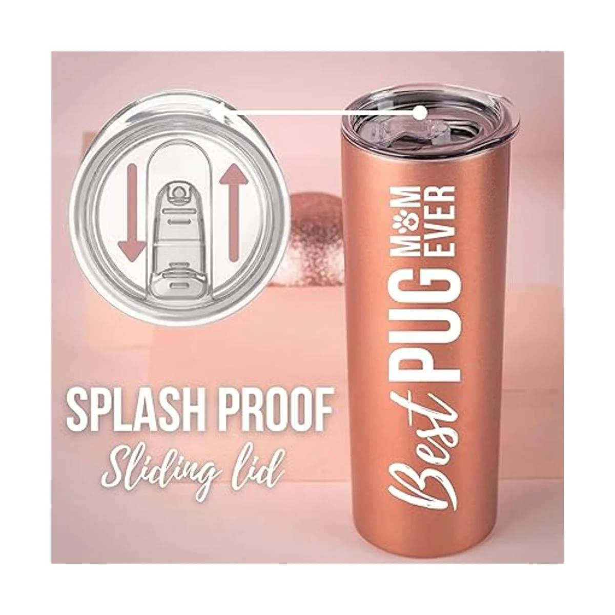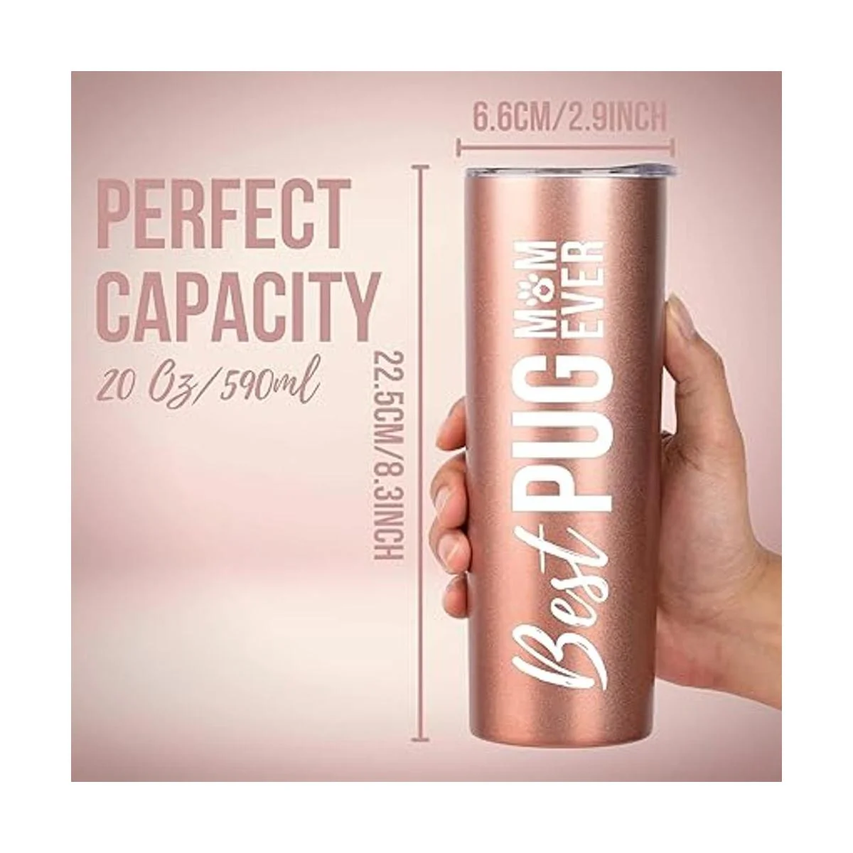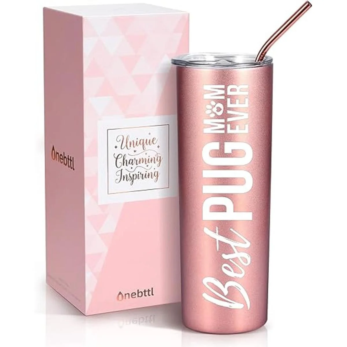 Regalos de mamá de pug, mejor mamá de pug, regalo para los amantes de los cachorros para mujeres, amantes de los perros, niñas, hijas, amigos, nieta, compañeros de trabajo, Neiece, ella, Onebottl Skinny Tumbler 20 oz oro rosa