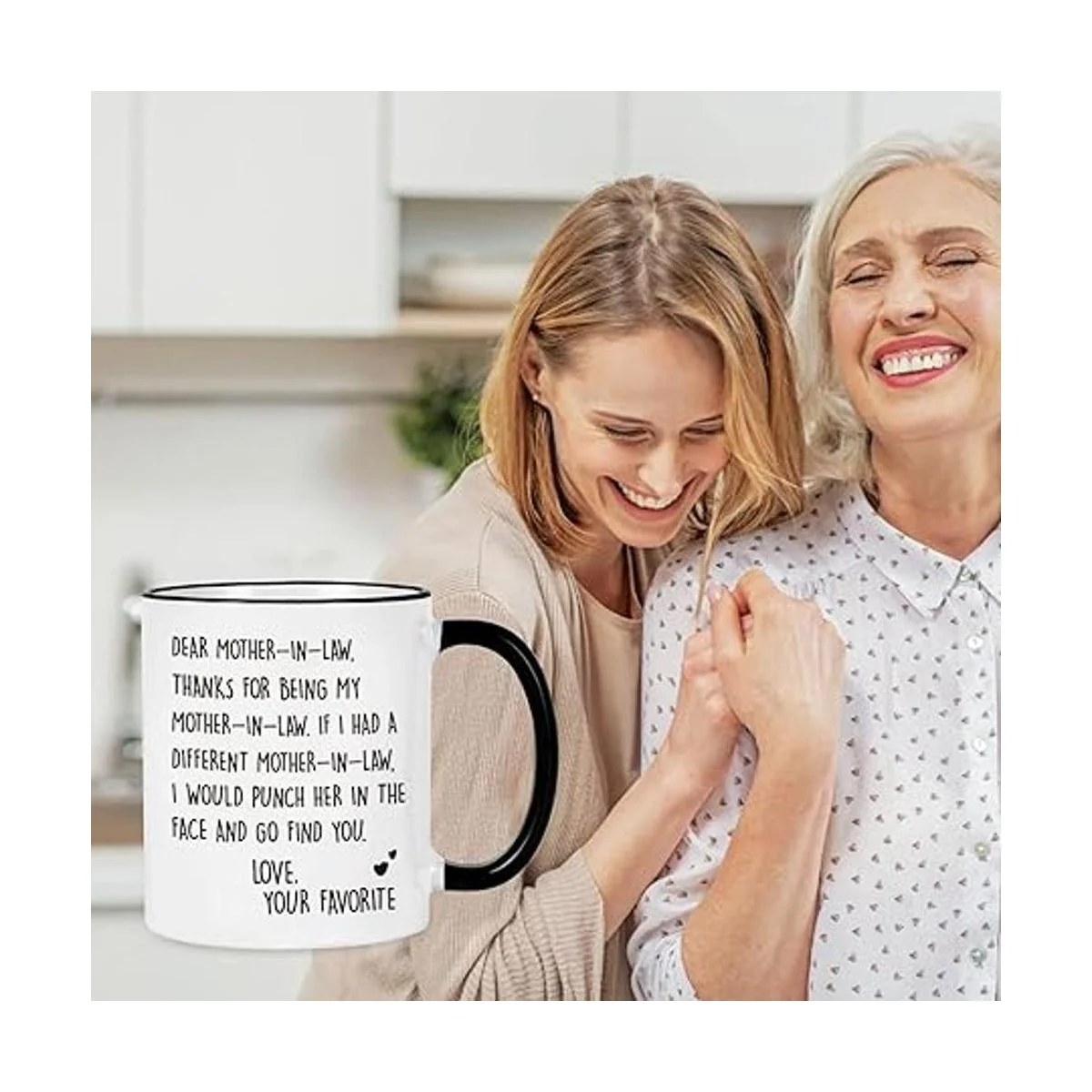 Diseño razonable: este regalo para suegra de nuera cuenta con mango en forma de C y parte inferior antideslizante por lo que la taza de café es fácil de sostener y difícil de deslizar de la mesa. Estos diseños humanos se consideran para mejorar la experiencia de uso de los usuarios y les permiten disfrutar de su maravillosa vida.