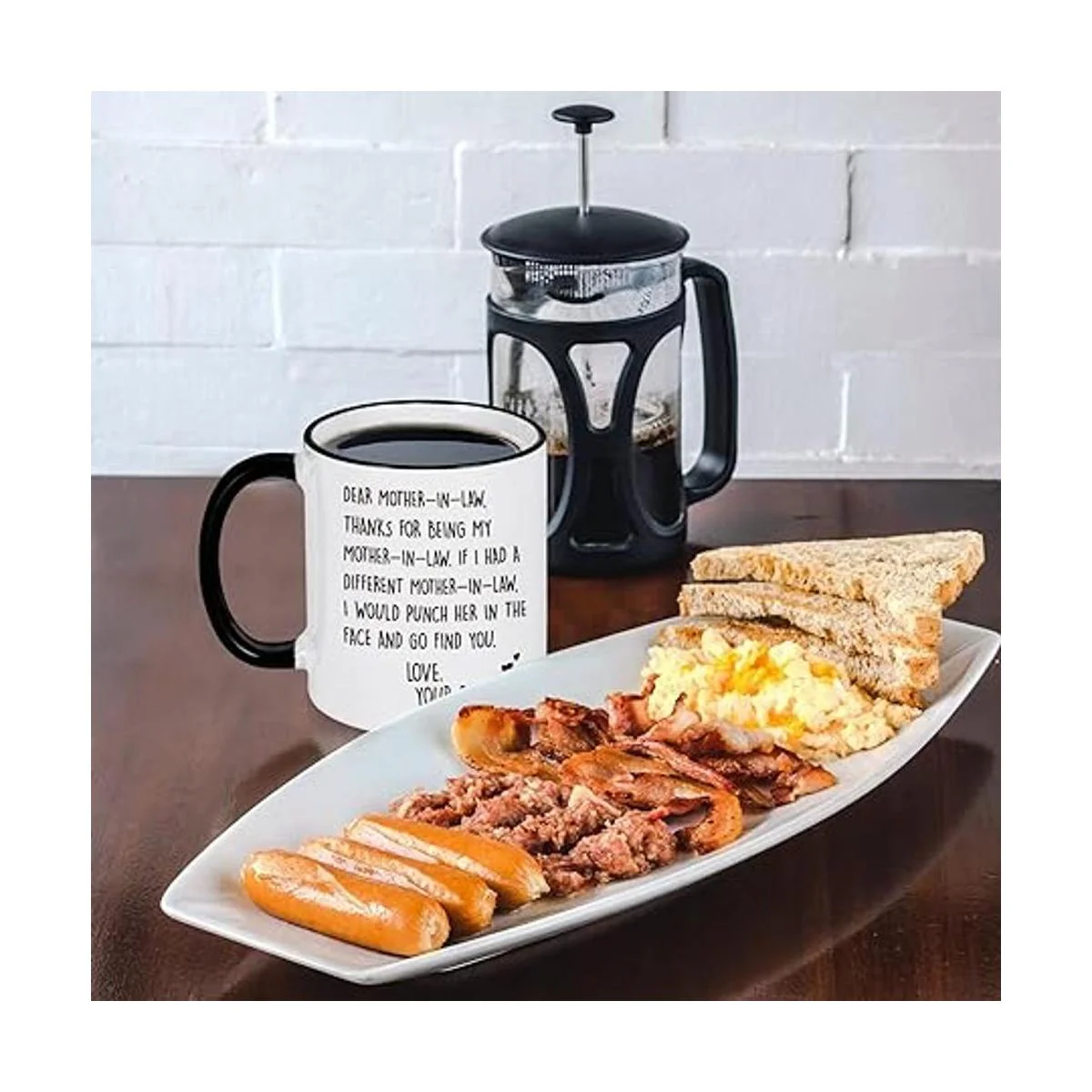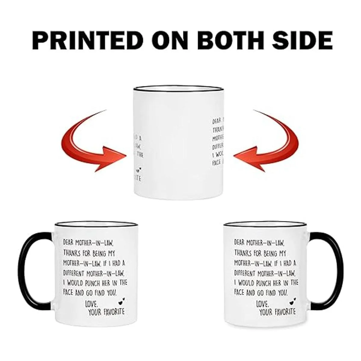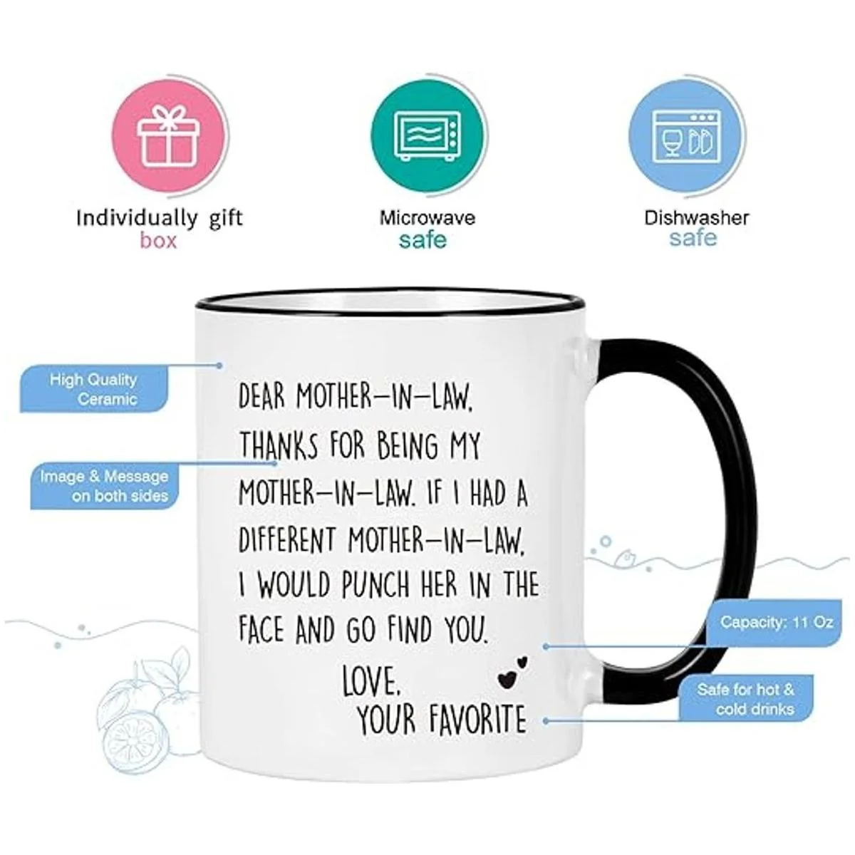 Impresión duradera: los personajes humorísticos están impresos en ambos lados de los regalos para la suegra para que pueda ver los mensajes ya sea de qué lado usa. La impresión en la taza de café es clara y duradera para un uso a largo plazo, que no se decolora ni raya. Se puede poner en lavavajillas, microondas.