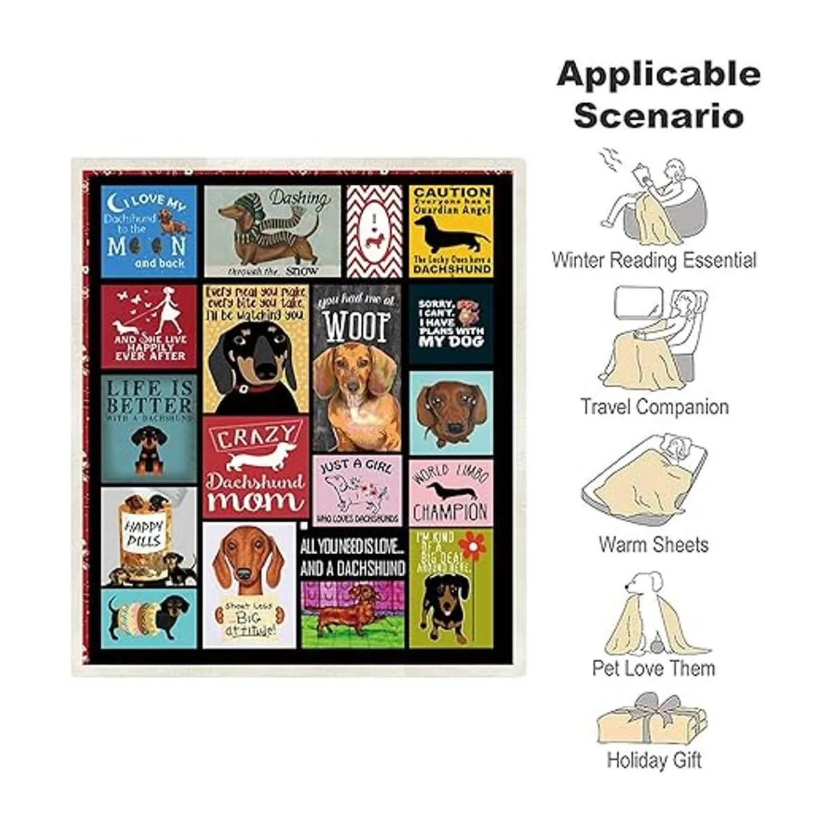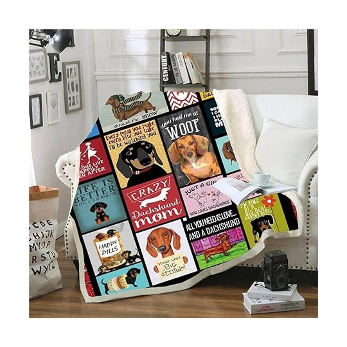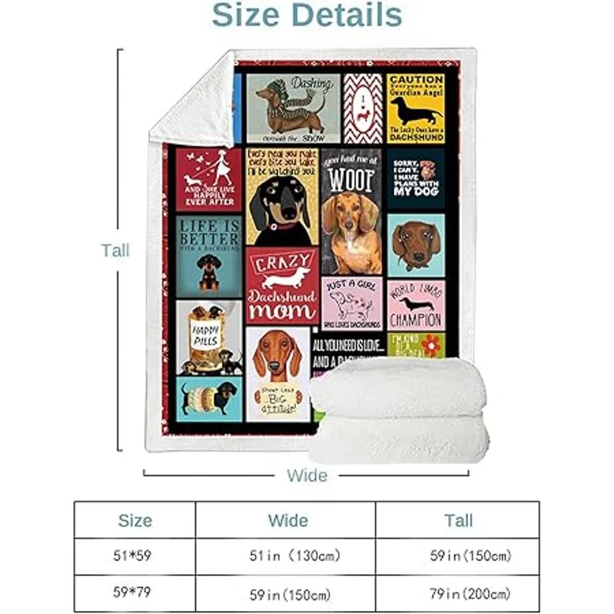Dos tamaños: manta impresa en 3D ultra suave con temática de perro salchicha, disponible en dos tamaños, 59 x 79 pulgadas y 51 x 59 pulgadas, dos tipos de tamaño son adecuados para sofá, dormitorio, sofá, oficina.