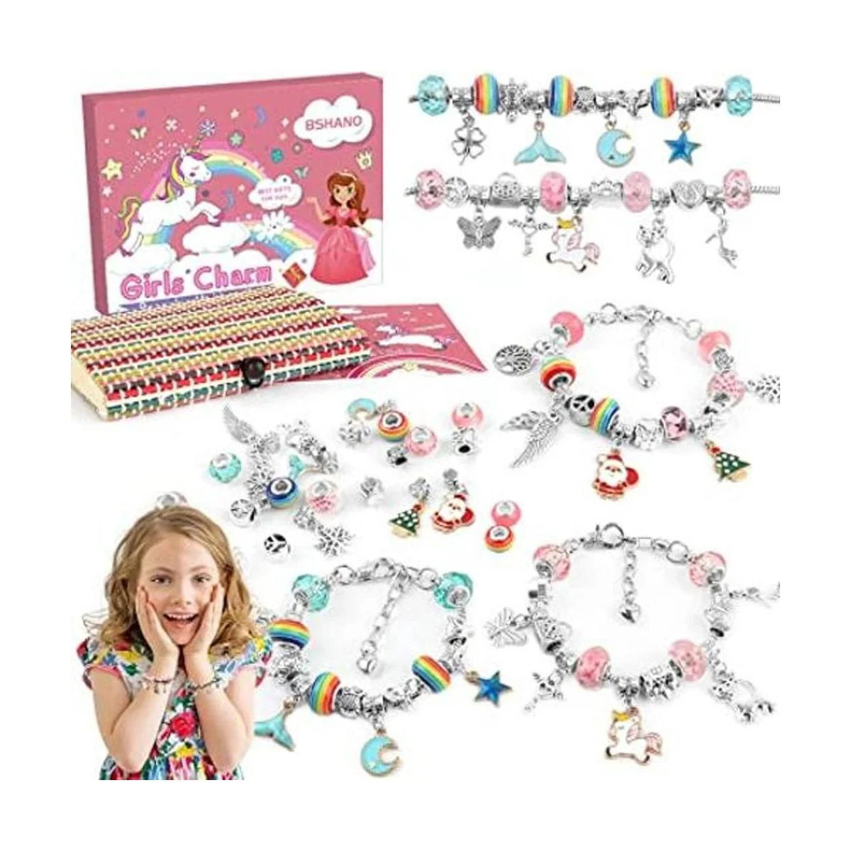 Regalos de unicornio para niñas, kit de fabricación de joyas, juguetes para niños, manualidades para niños de 6, 7, 8, 9 y 10 años de edad, suministros para hacer pulseras con dijes y cuentas, juego de fiesta de cumpleaños para niñas, calcetines de Navidad para niños