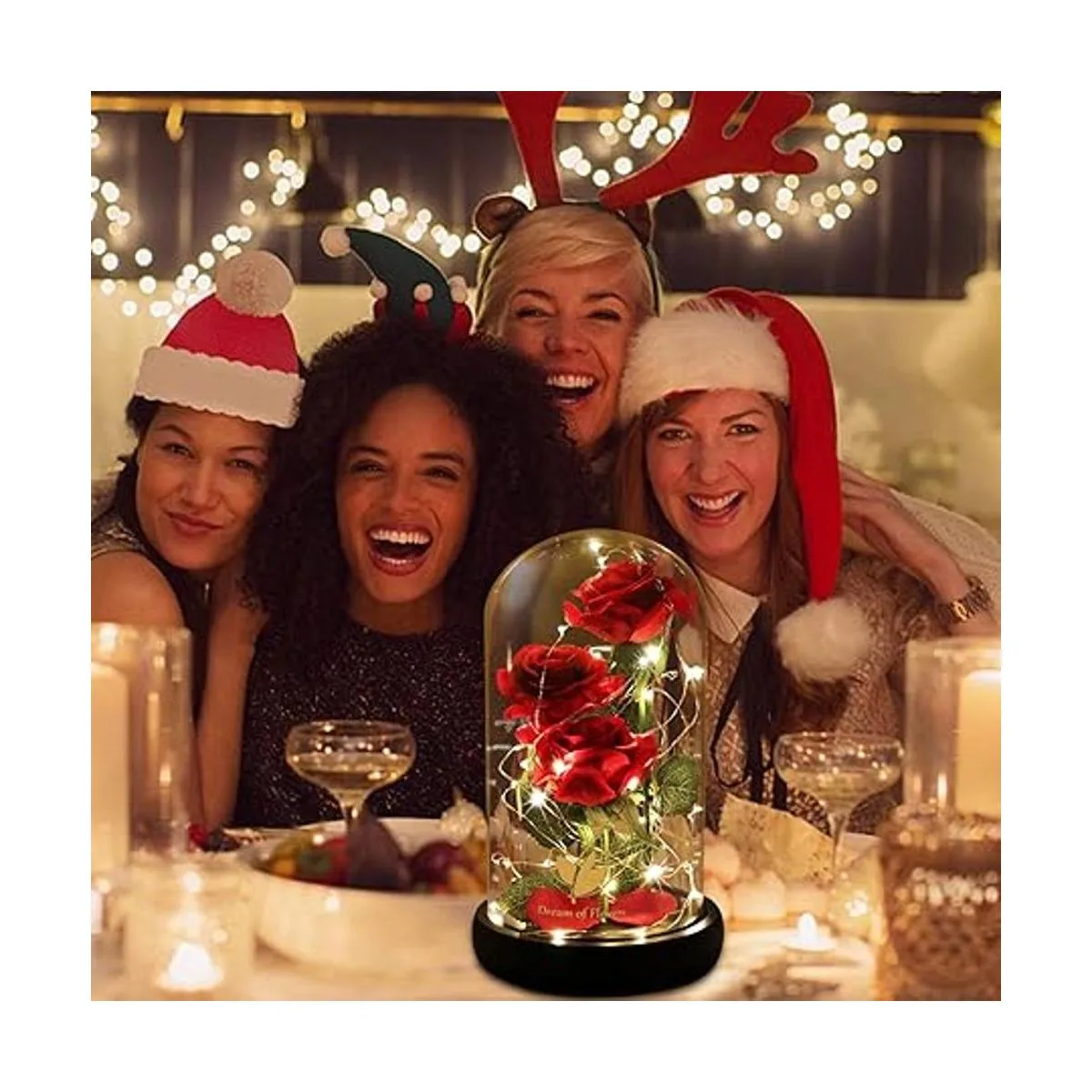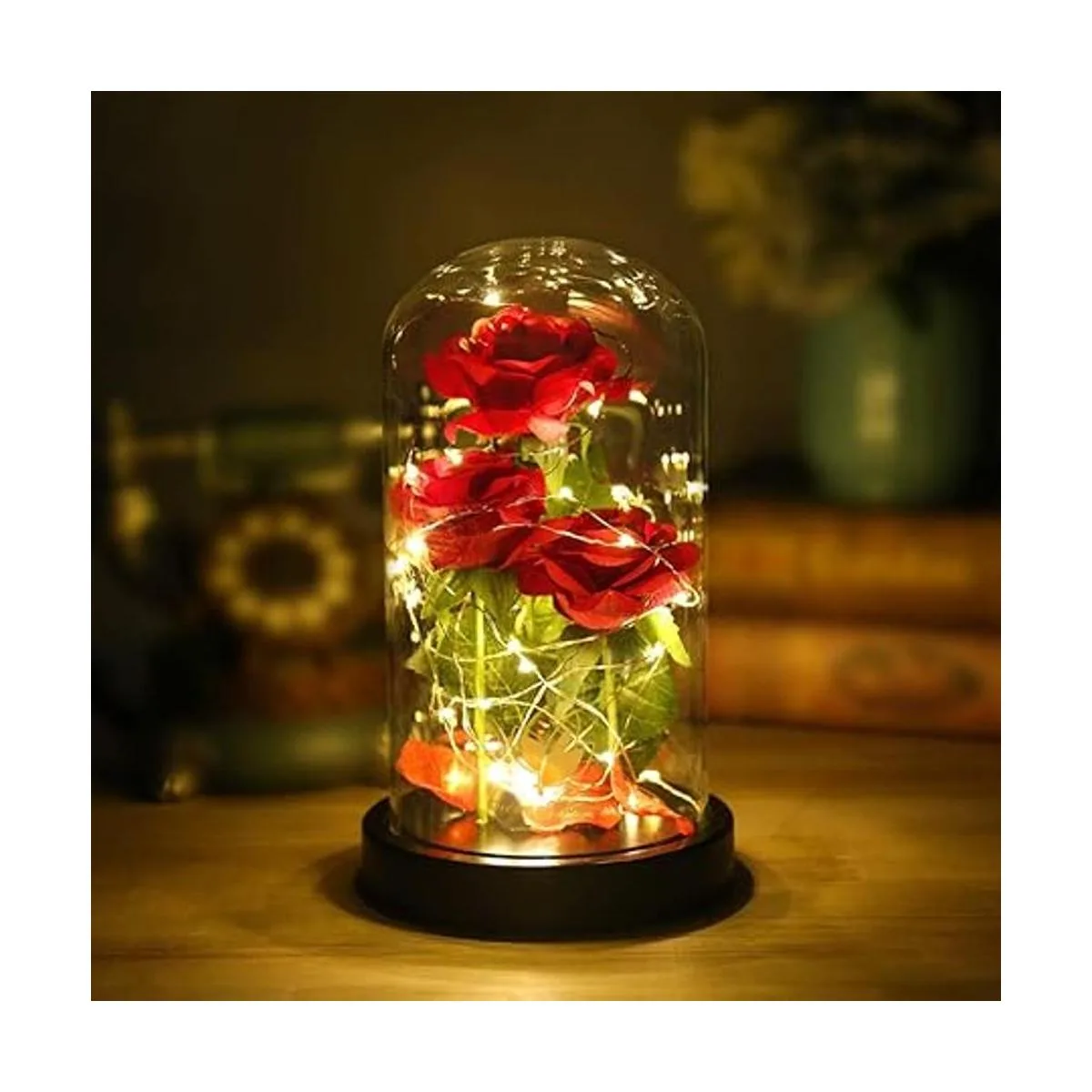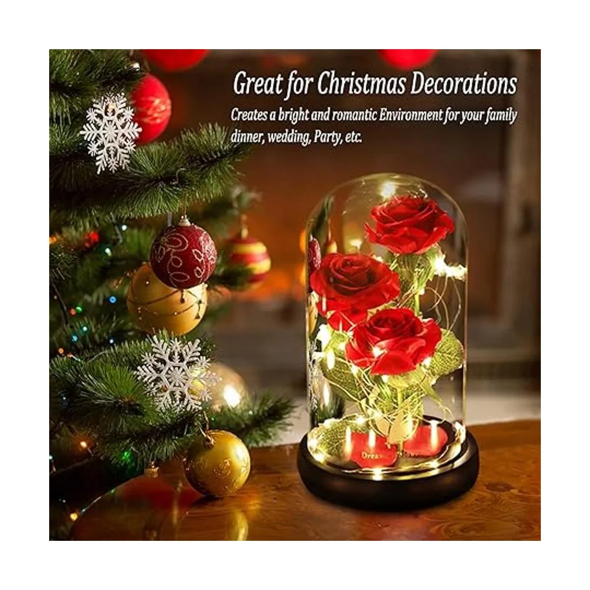 Regalo único y perfecto: Las pequeñas luces LED están alrededor de la rosa y los pétalos caídos. La luz blanca cálida no es agresiva y nos da un ambiente romántico, adecuado para una cena a la luz de las velas. No importa si se trata de una pareja joven o una pareja de mediana edad, este regalo es lo que necesitas para el día de San Valentín, Navidad, cumpleaños, boda o aniversario.