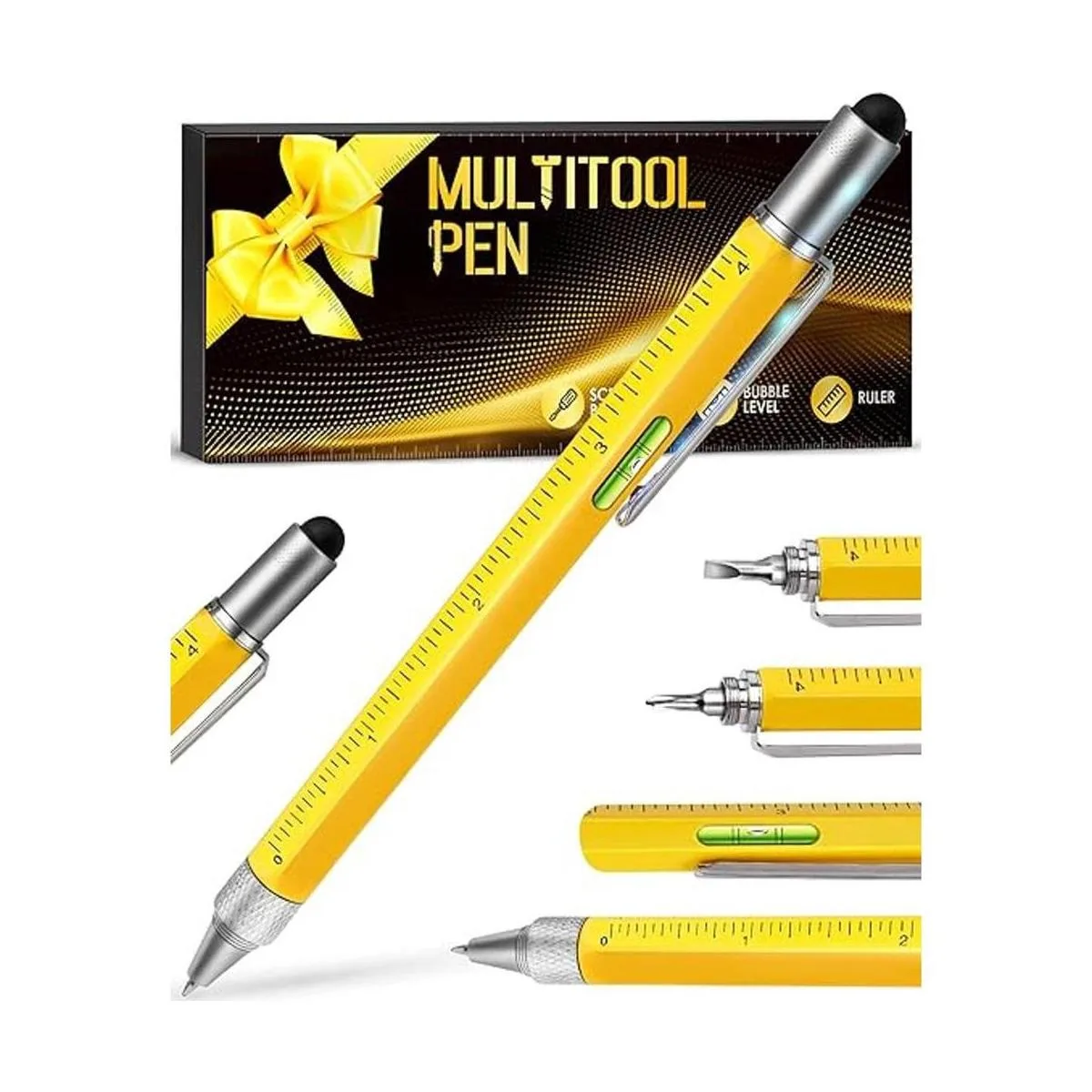 6 funciones en 1 bolígrafo creativo: comenzando con la parte superior, tiene una punta omnidireccional en la parte superior para movimientos precisos, dibujos y funciones táctiles de pantalla sensible. Dentro de eso, hay una cabeza plana de doble extremo y un destornillador Philips para fijaciones rápidas. Con un nivel de burbuja altamente preciso para colgar fotos o cualquier cosa que necesite equilibrio. En la parte inferior se encuentra el icónico bolígrafo de alta calidad con buen agarre y escritura sin problemas. Funciona como un encanto, regalos geniales para hombres y mujeres