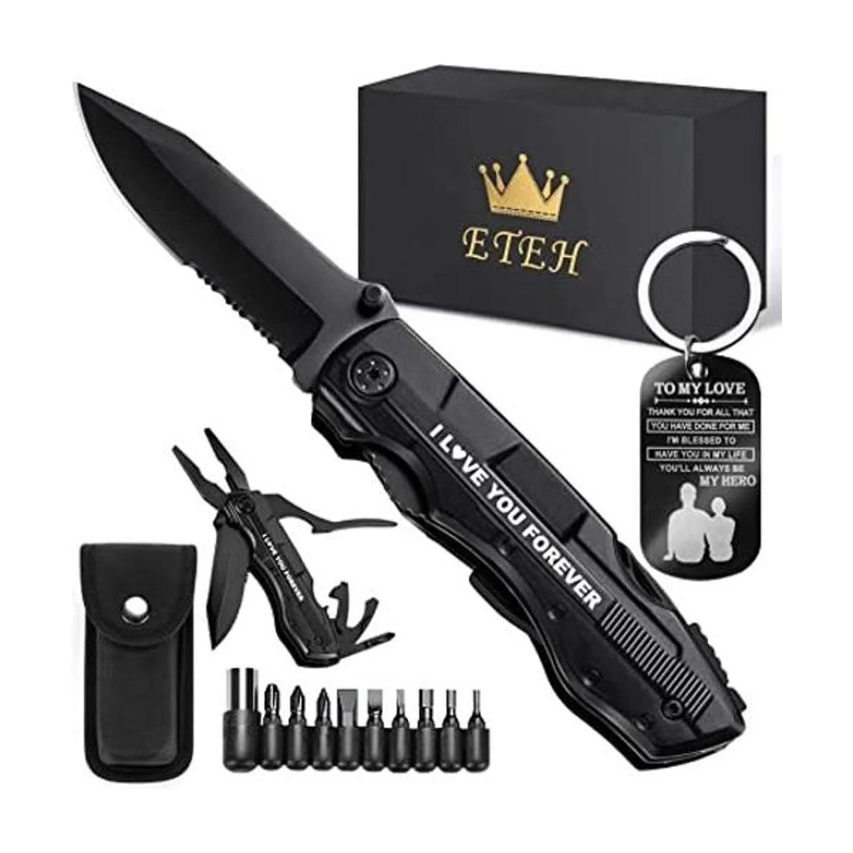 Regalos para hombres, novio, marido, cuchillo de bolsillo multiherramienta I love you, regalo de aniversario de Navidad, día de San Valentín, idea de regalo de cumpleaños, cuchillo multiherramienta para escalada, campamento, ciclismo, senderismo