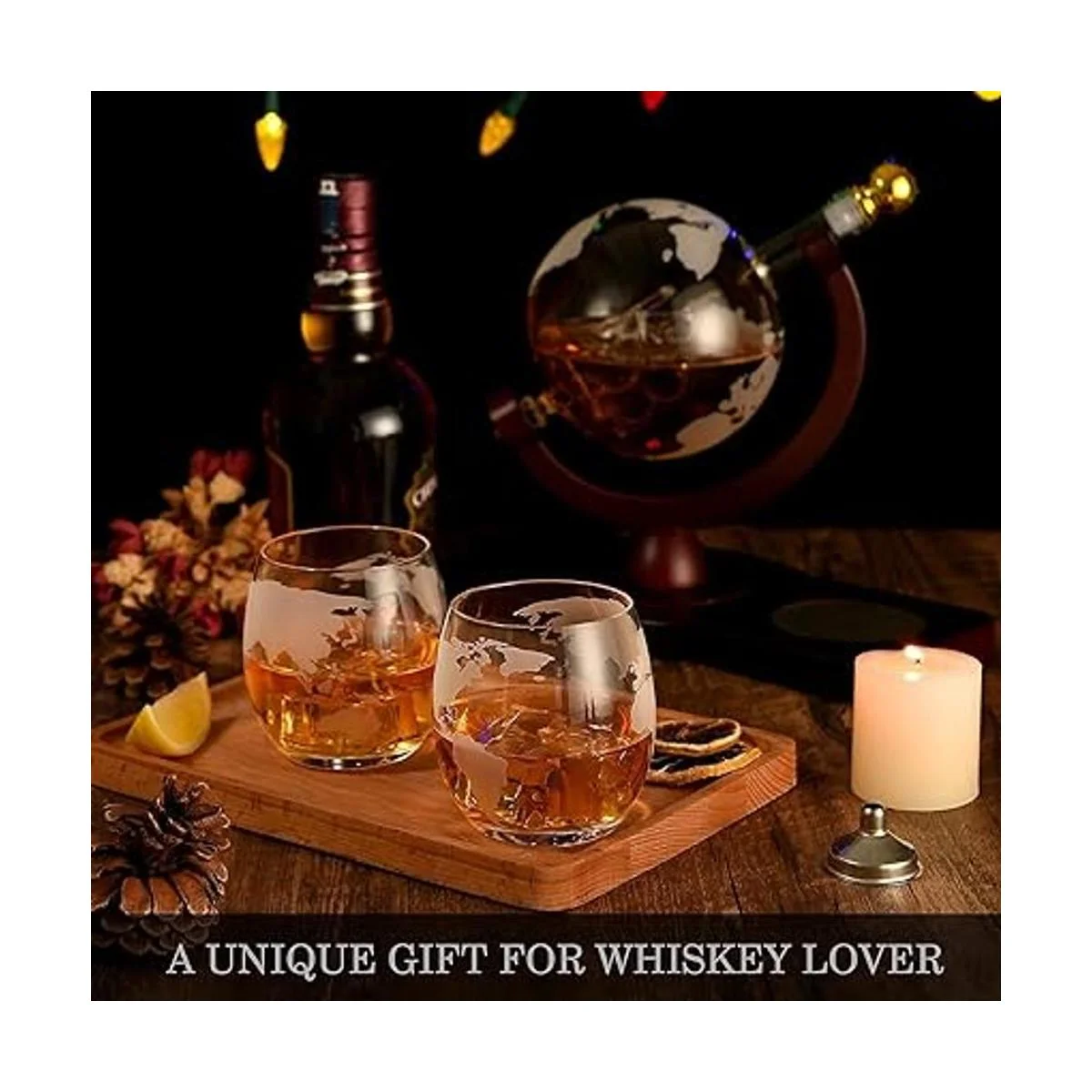 Regalos para hombres y papá, regalo único de cumpleaños de aniversario para él, marido, padrinos de boda, juego de decantadores de globo con 2 vasos, regalos de Navidad para boda, bourbon, licor, escocés, regalos geniales para mamá y abuelo