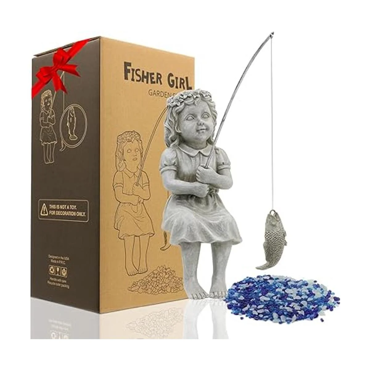 Diseño único: nuestra chica Fisher ha atrapado un pequeño pez. Listo para posar en el borde de tu estanque. Disfrutarás de muchas risas con amigos y familiares con su captura del día en su señuelo de pesca.