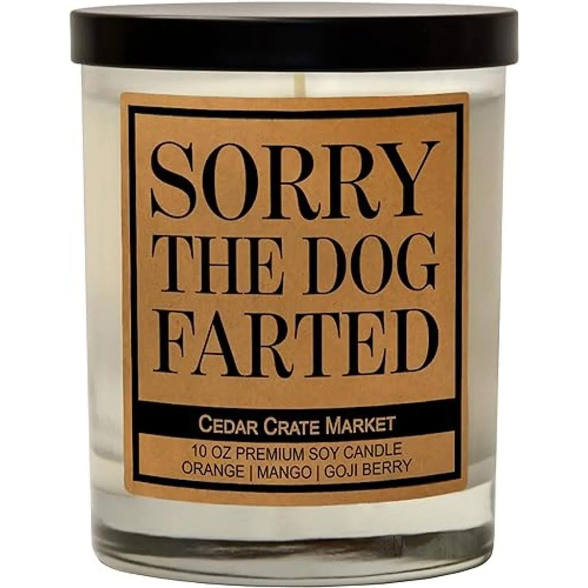 Regalos para amantes de los perros: Sorry the Dog Farted, etiqueta kraft, tarro de vidrio reutilizable de 10 onzas, vela de soja perfumada, cuidadosamente empaquetada con una bonita caja de regalo. La vela perfumada perfecta para mascotas es un regalo divertido y humorístico para los amantes de los cachorros, propietarios, mamás peludas, esposa, madre, hermana, amiga, fomentador, rescate, adopción. Es un excelente regalo para tu mejor amigo, mamá perro, papá perro, mejor amiga, hermana, amiga de trabajo, amigo para siempre o amigo verdadero