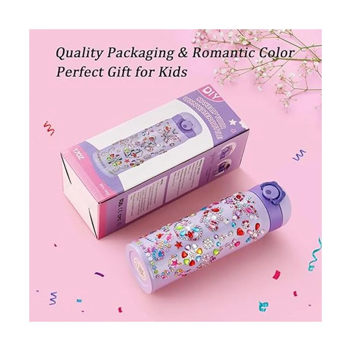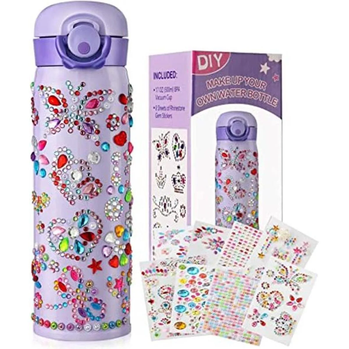 Regalos para niñas decoran tus propias botellas de agua con calcomanías de gemas con purpurina de diamantes de imitación, regalos de Navidad para niñas, manualidades y manualidades, sin BPA, taza aislada al vacío de acero inoxidable 17 onzas