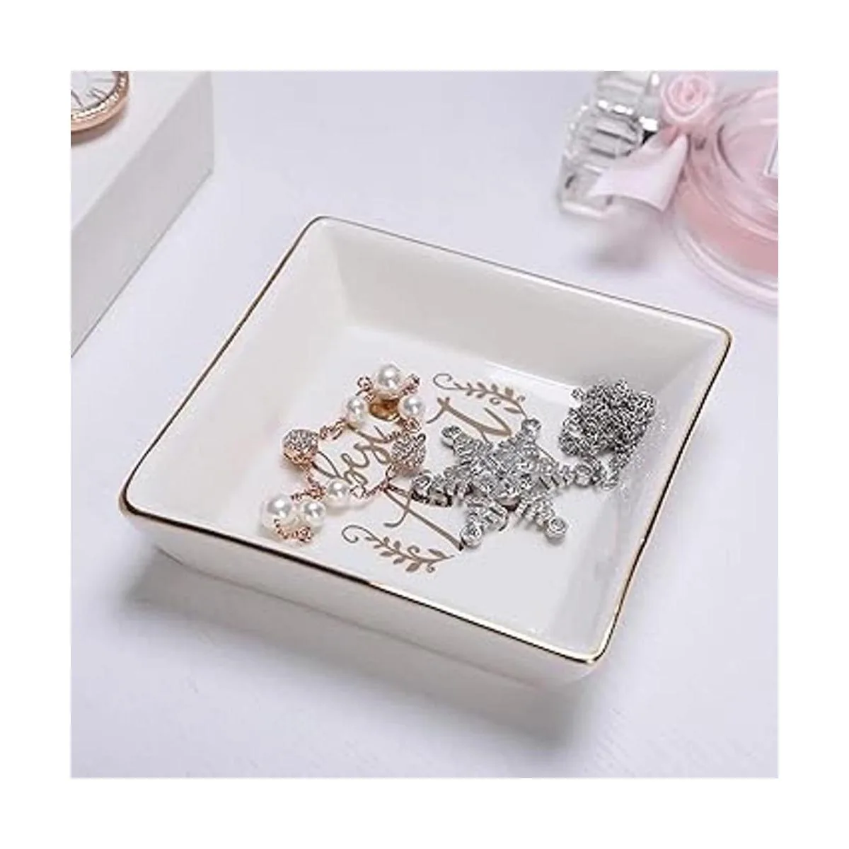 Material y tamaño: hecho de cerámica esmaltada de gran calidad con un diseño único, elegante y elegante. Nuestro plato de joyería mide aproximadamente 3.93 pulgadas de largo x 3.93 pulgadas de ancho x 0.98 pulgadas de alto. Ideal para guardar anillos, aretes, collares, pulseras, accesorios u otros abalorios