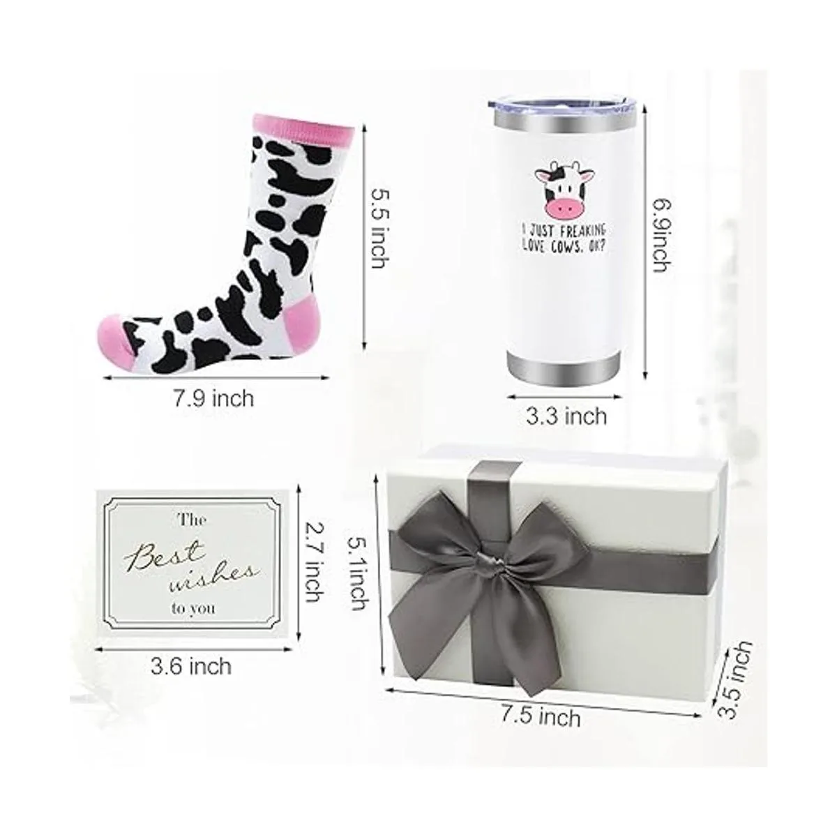 Regalos temáticos de vaca, la mejor idea, bonito vaso de vino con estampado de vaca y calcetines para mujer, juego de cesta de regalo para amantes de las vacas, lindo estampado de vaca para animales de granja