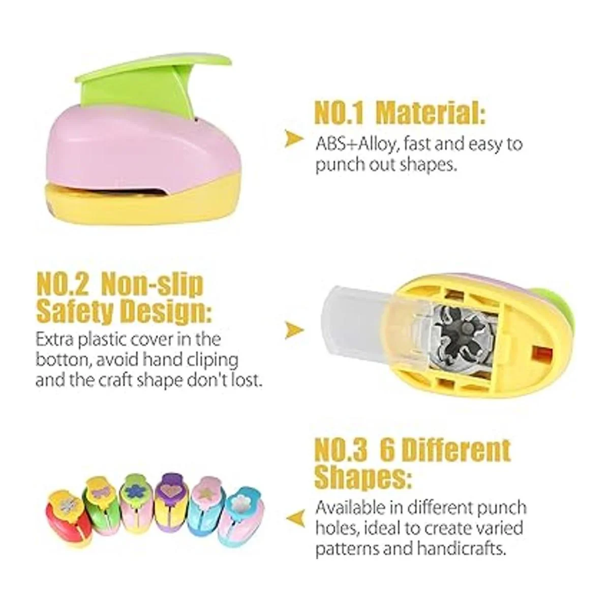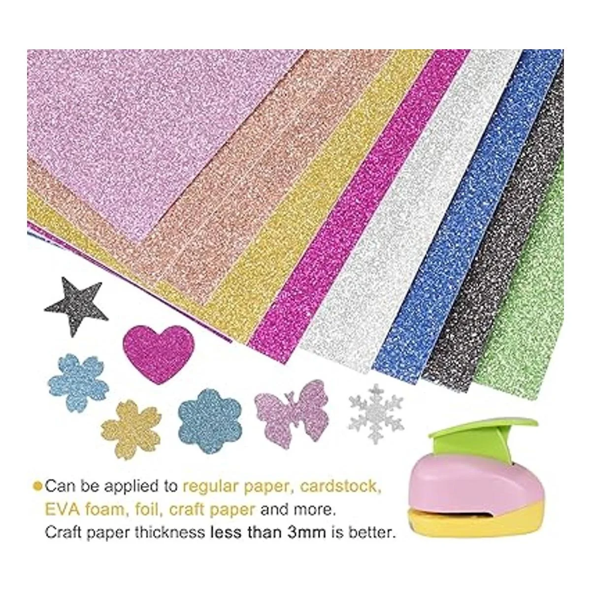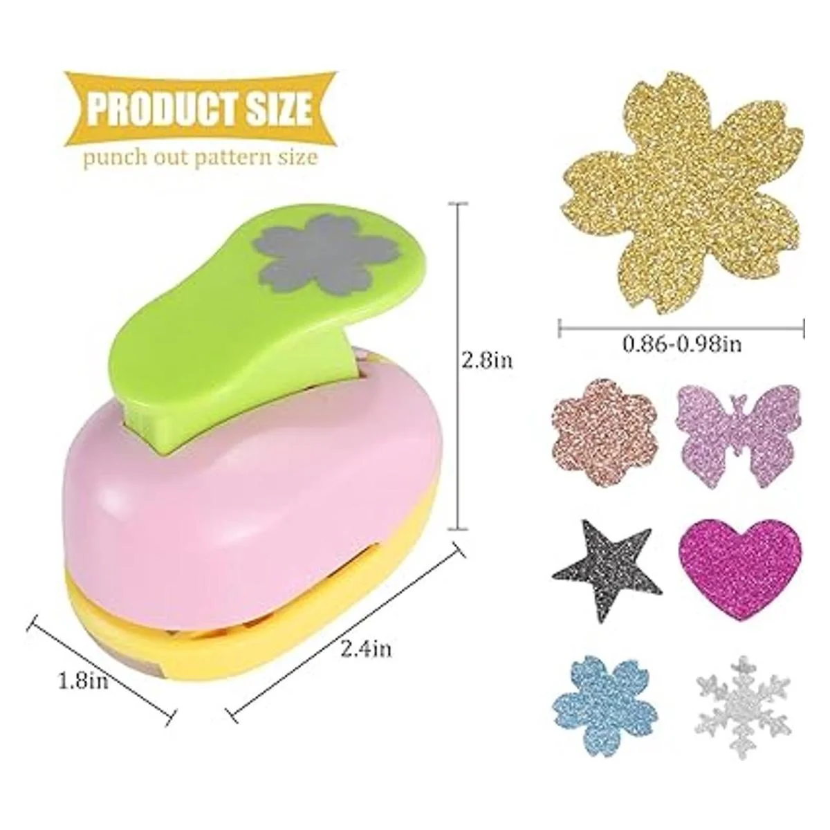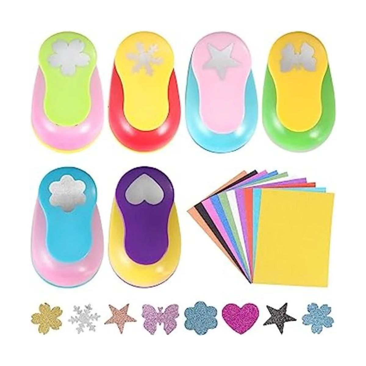 Regilt Juego de 6 perforadoras de papel con 10 papeles de cartulina con purpurina, juego de perforadores decorativos para álbumes de recortes, diferentes formas, para suministros de oficina 6 unidades, diferentes formas
