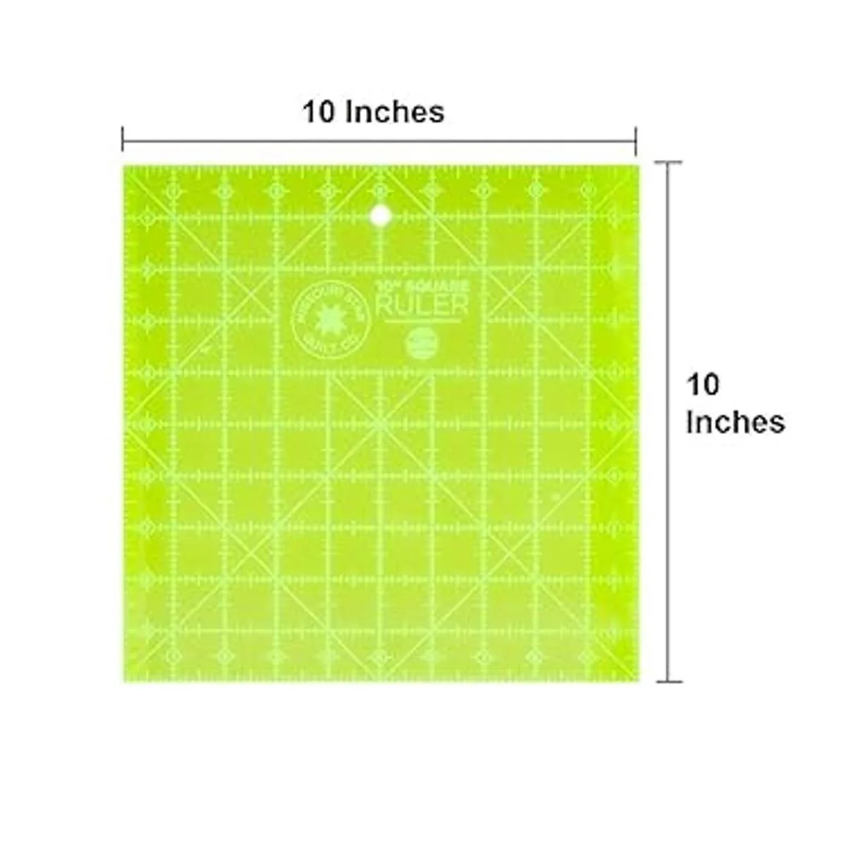 Regla de acolchado acrílica, 10 x 10 pulgadas, regla cuadrada para coser, medir y cortar tela de edredón Herramienta de borde recto para pasteles de capas, edredones de paquetes de dijes y proyectos de manualidades, verde