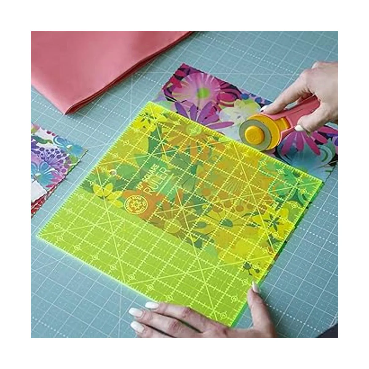 Regla cuadrada fácil de usar: el color verde brillante proporciona una excelente visibilidad y es fácil de detectar contra telas claras y oscuras. Utiliza esta útil herramienta para hacer mantas, diseños de patchwork, proyectos de acolchado de tiras y costura.
