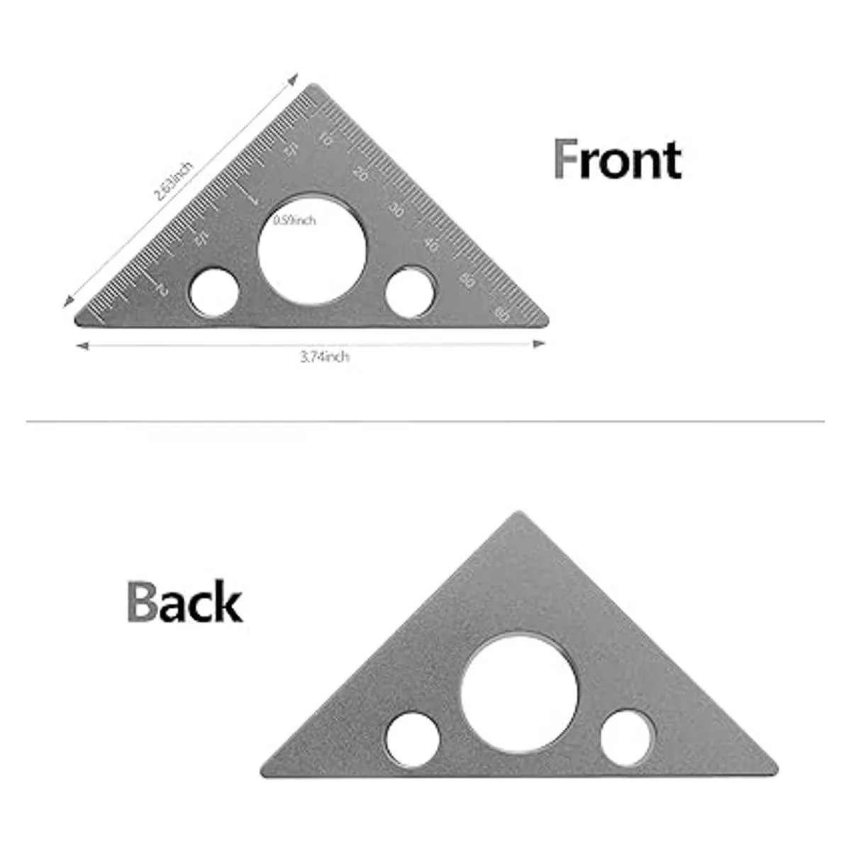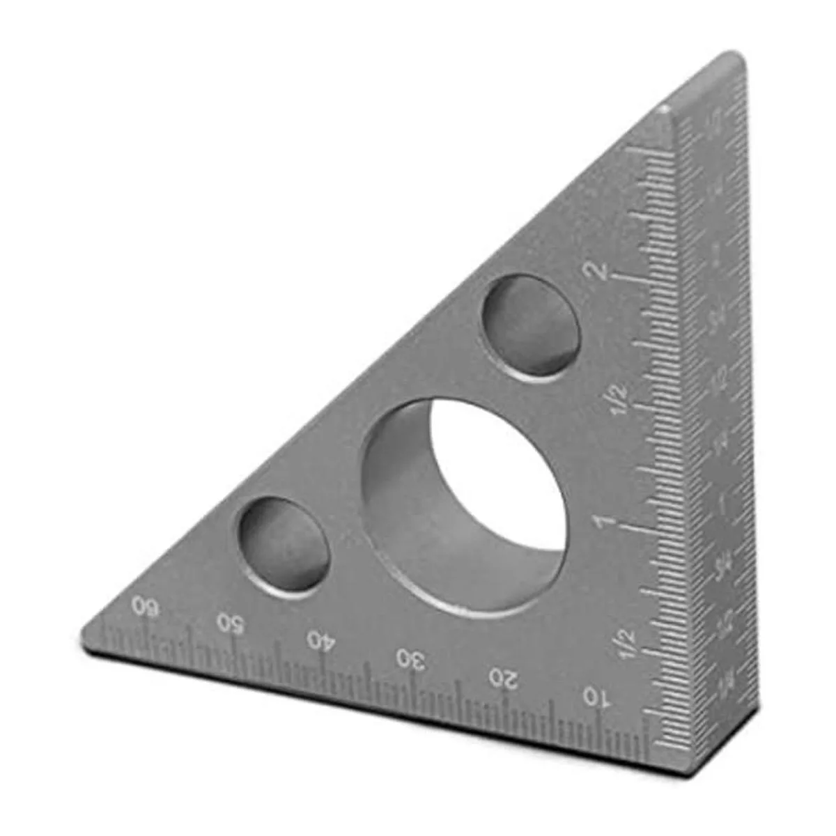 Material de aleación de aluminio: esta regla triangular está hecha de aleación de aluminio resistente después del tratamiento de oxidación, esta regla triangular para carpintería es duradera, resistente a la distorsión, práctica, antioxidante y resistente a la corrosión.