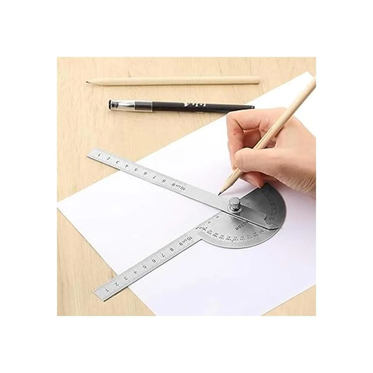 Brazo transportador ajustable: el ángulo se identifica rápida y fácilmente mediante el bloqueo de tuerca moleteada del pulgar en la posición deseada, puedes fijar el ángulo a la trama, adecuado para ajustar biseles, dibujar líneas radiales, medir y marcar ángulos