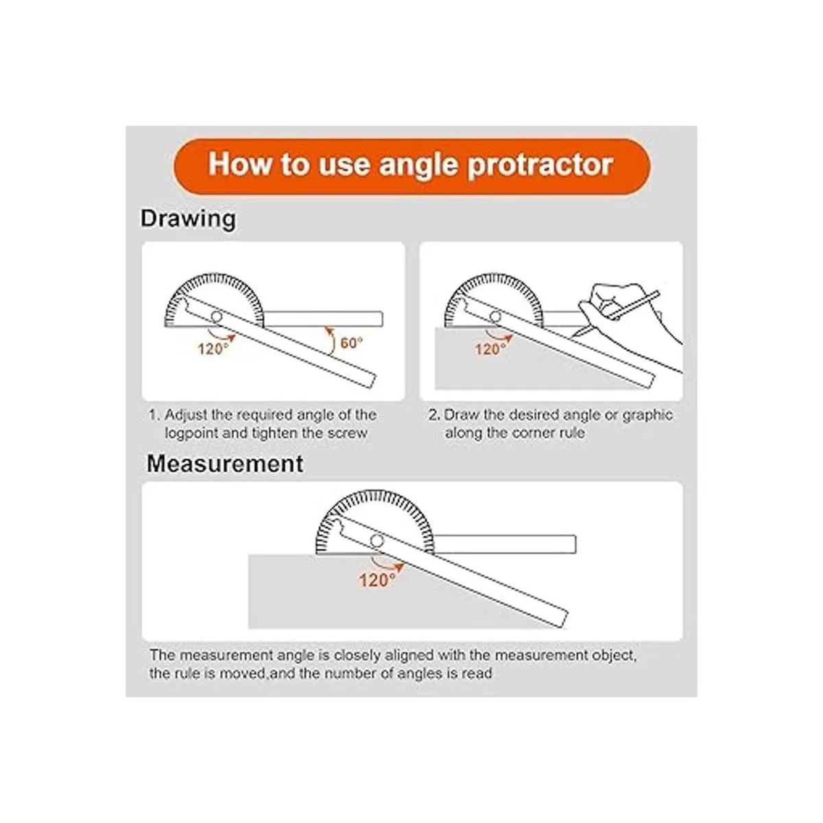 Material de calidad: el transportador de buscador de ángulos está hecho de acero inoxidable de calidad, con buena durabilidad y resistencia al desgaste, no se oxida fácilmente, y se puede aplicar durante mucho tiempo, pero ten en cuenta que el borde de acero inoxidable de pico, ten cuidado mientras se utiliza