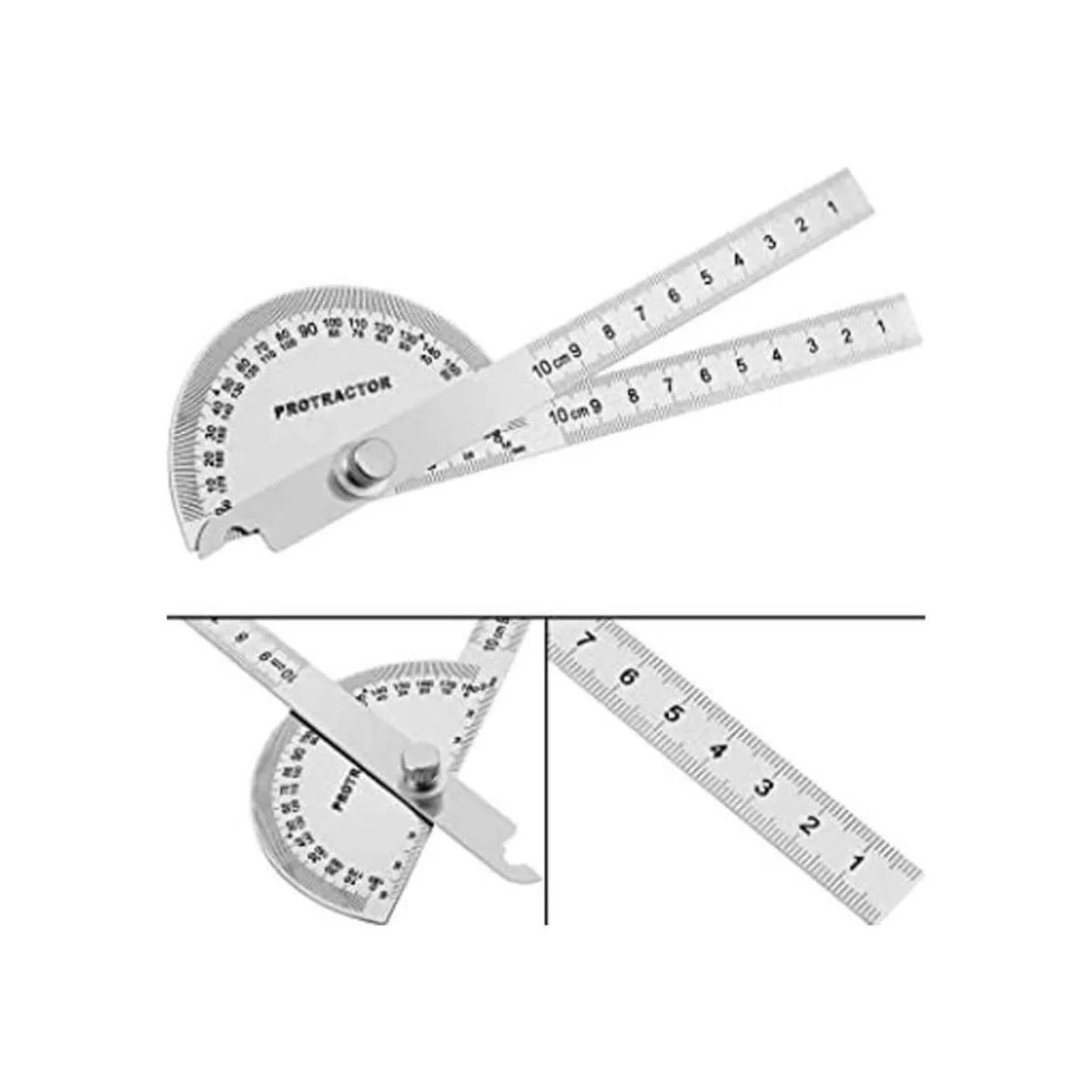 Diseño 2 en 1: la combinación de regla y transportador hace que pueda medir la longitud 0.03.9 in con regla fija y medir la longitud 0.03.9 in mediante la regla móvil, el transportador semicircular en la parte superior puede medir de 0 a 180 grados de izquierda a derecha y derecha a izquierda