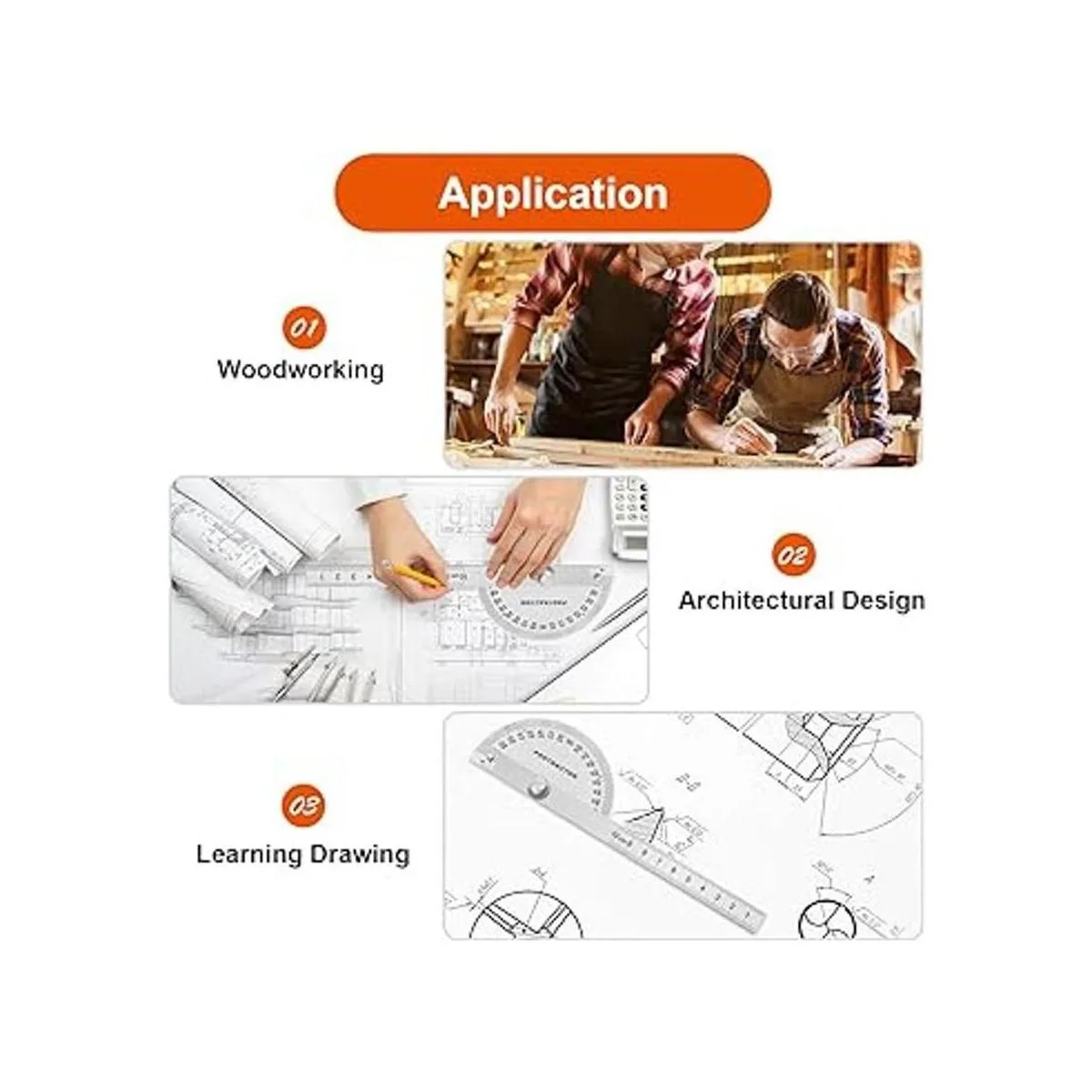 Amplios usos: el transportador de cabeza redonda es adecuado para ingeniería, medición de ángulos, dibujo de estudiantes, diseño arquitectónico, carpintería, medición de longitud, regalo ideal para estudiantes, artesanos, arquitectos y diseñadores