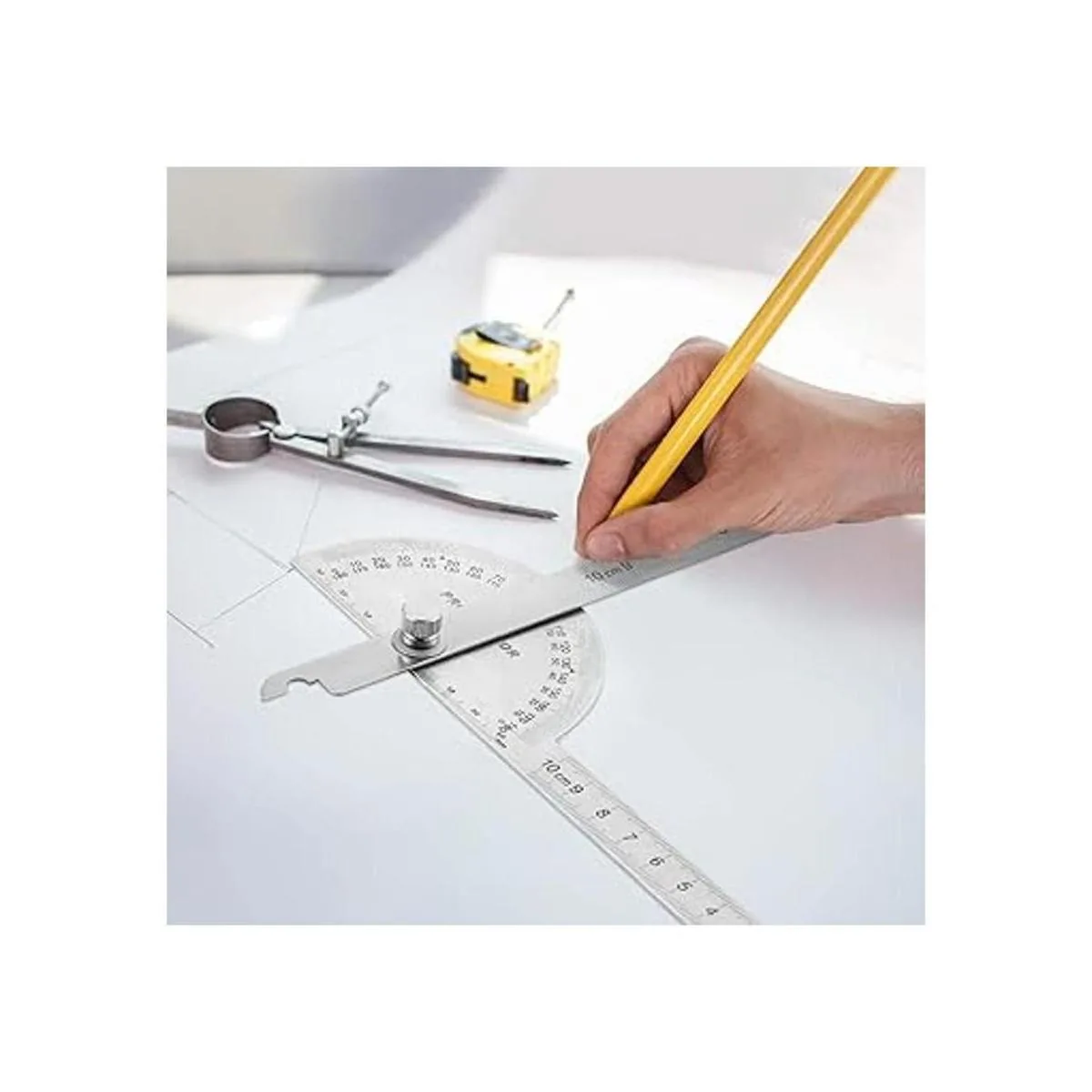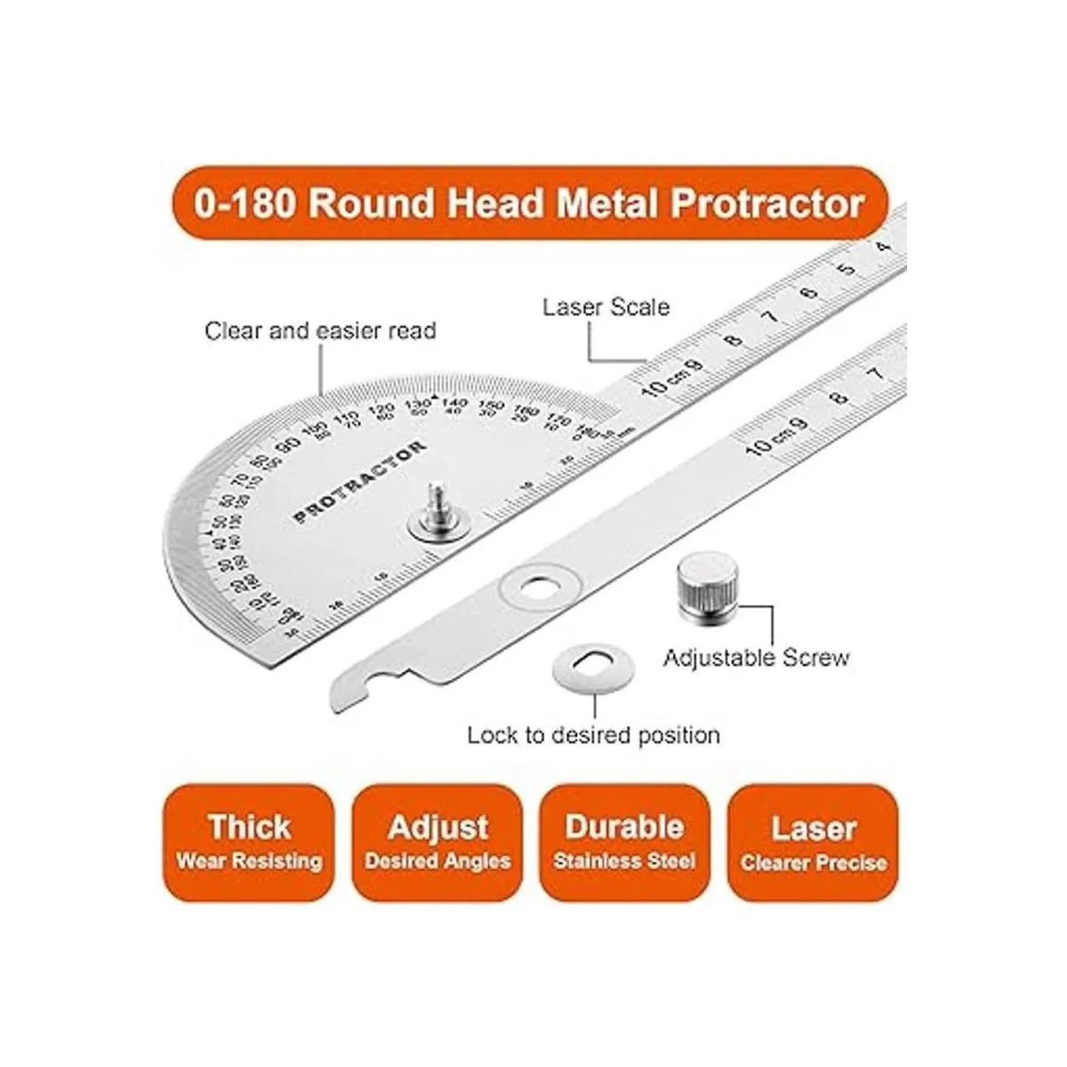 Herramienta de precisión: el transportador y la regla de la herramienta de medición de ángulo están grabados con láser de precisión, las lecturas son claras y precisas, fáciles de leer, duraderas y cómodas para su uso