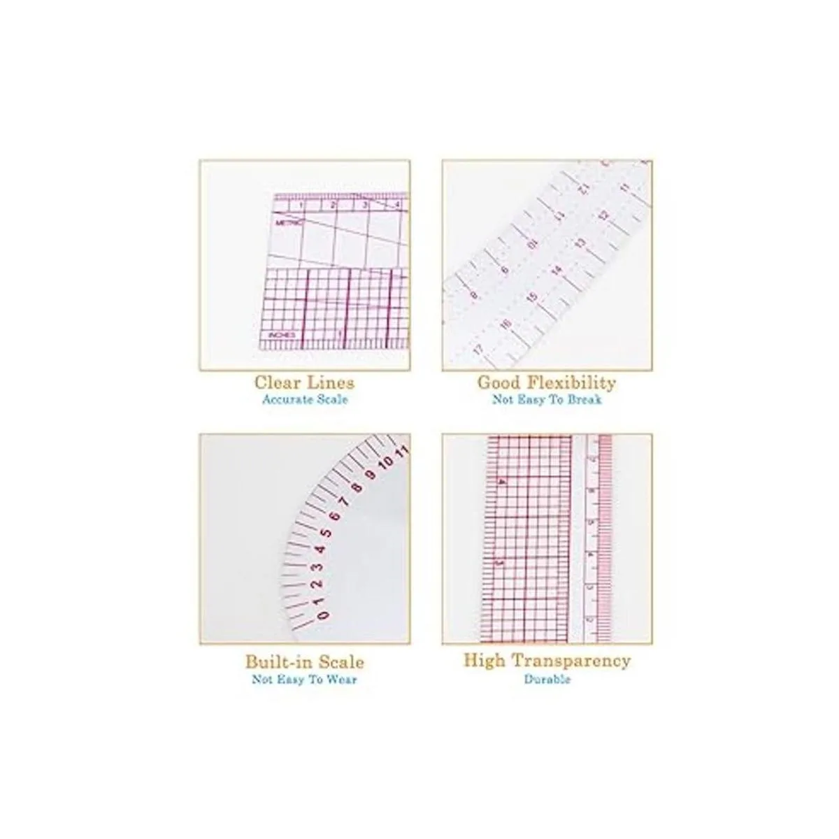 9 estilos diferentes: regla triangular, regla media redonda, regla cuadrada en L, regla multifunción, regla de coma, etc. estilos como se muestra en las imágenes que pueden satisfacer tus diferentes demandas de costura o medición. Te permite disfrutar de la diversión del bricolaje y ofrecerte una buena experiencia de uso.