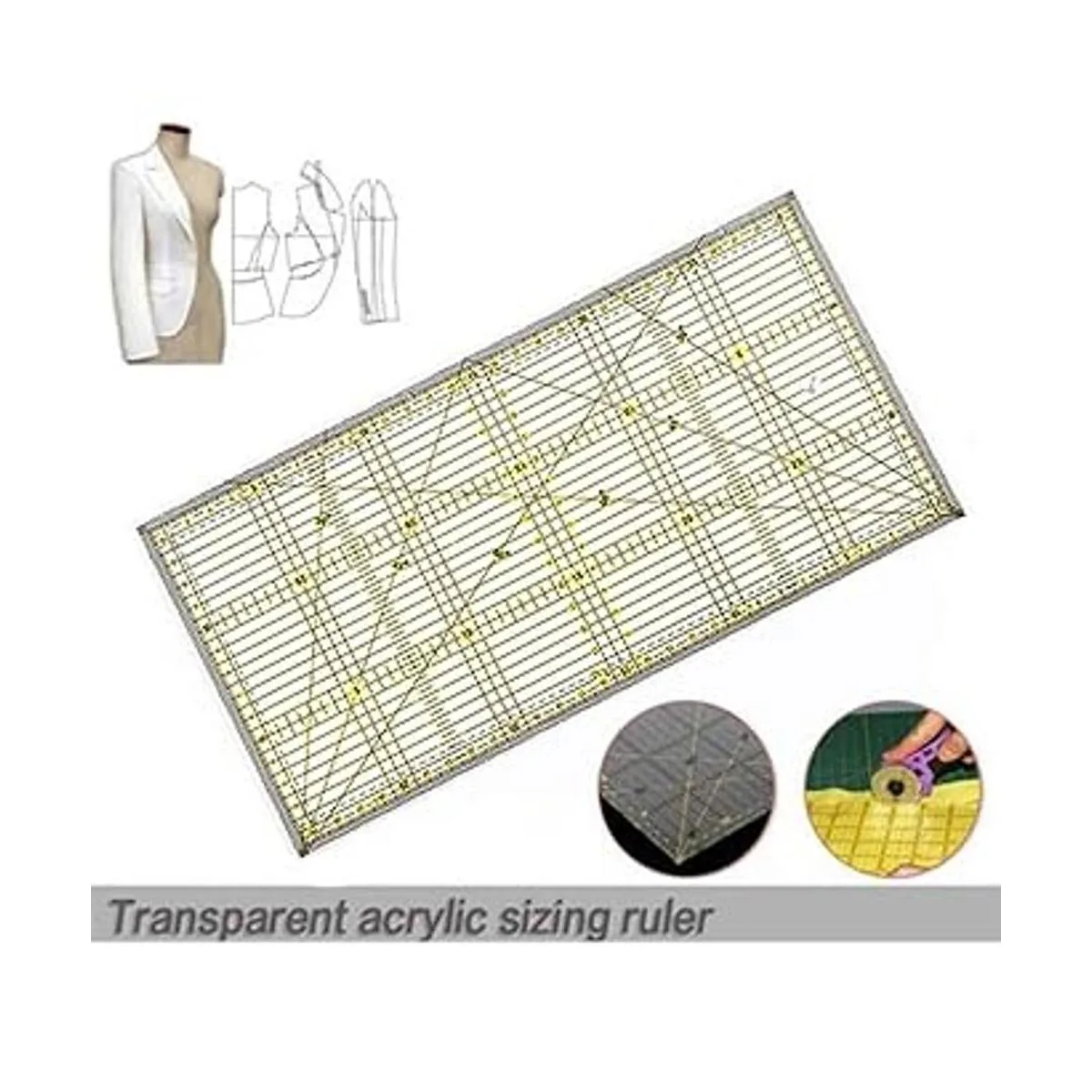 Reglas de acolchado, multiusos, regla de tela de retazos, regla de corte de diseño de ropa, regla de patchwork con doble cuadrícula de colores, regla de plantilla para costura y manualidades, 5.9 in x 11.8 in