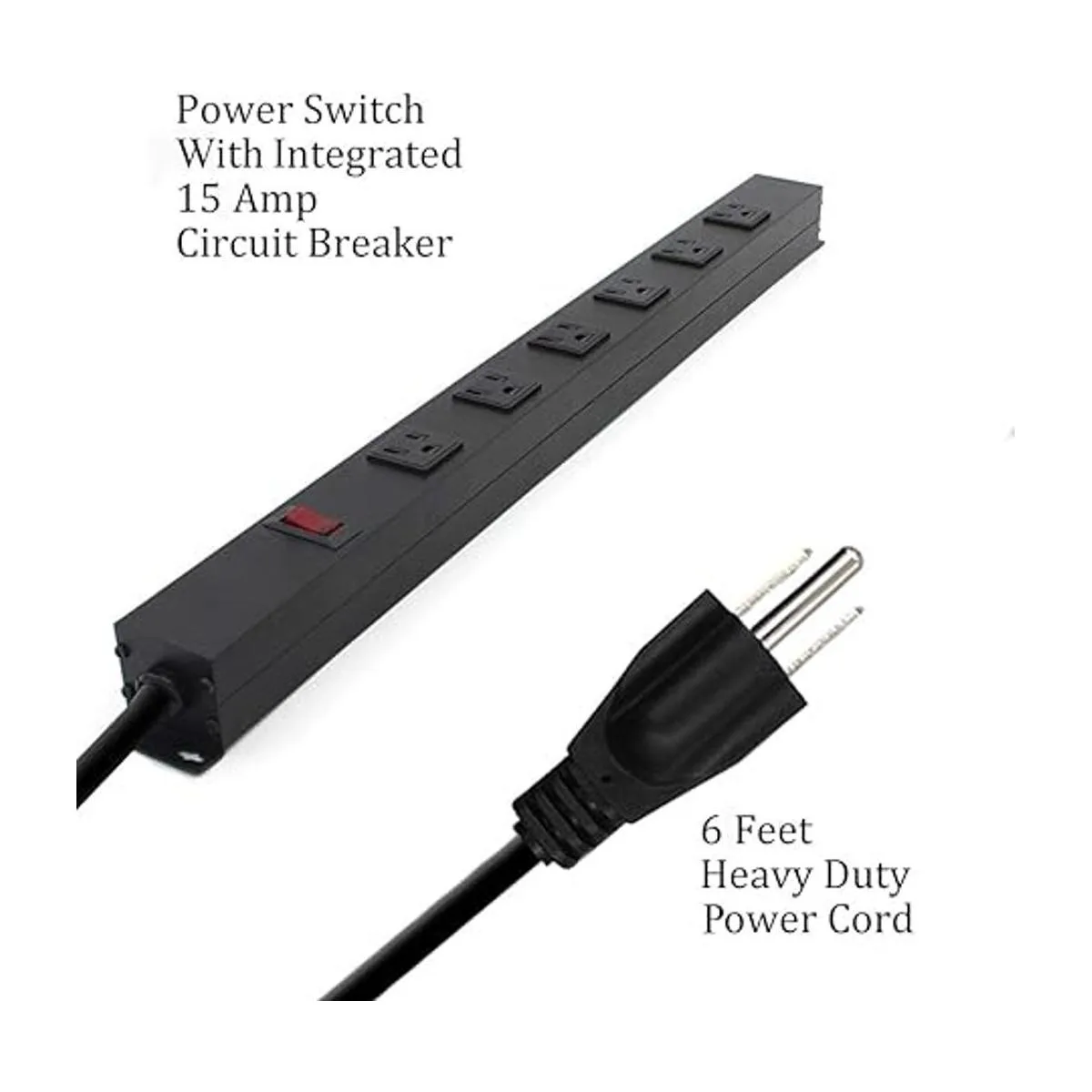 Regleta de alimentación con 6 tomas de corriente de 6 pies UL 14AWG cable recto para comerciales, industriales, escolares y hogares, 15A 125V 1875W, aprobado por ETL y listado, negro de 6 pies paquete de 1