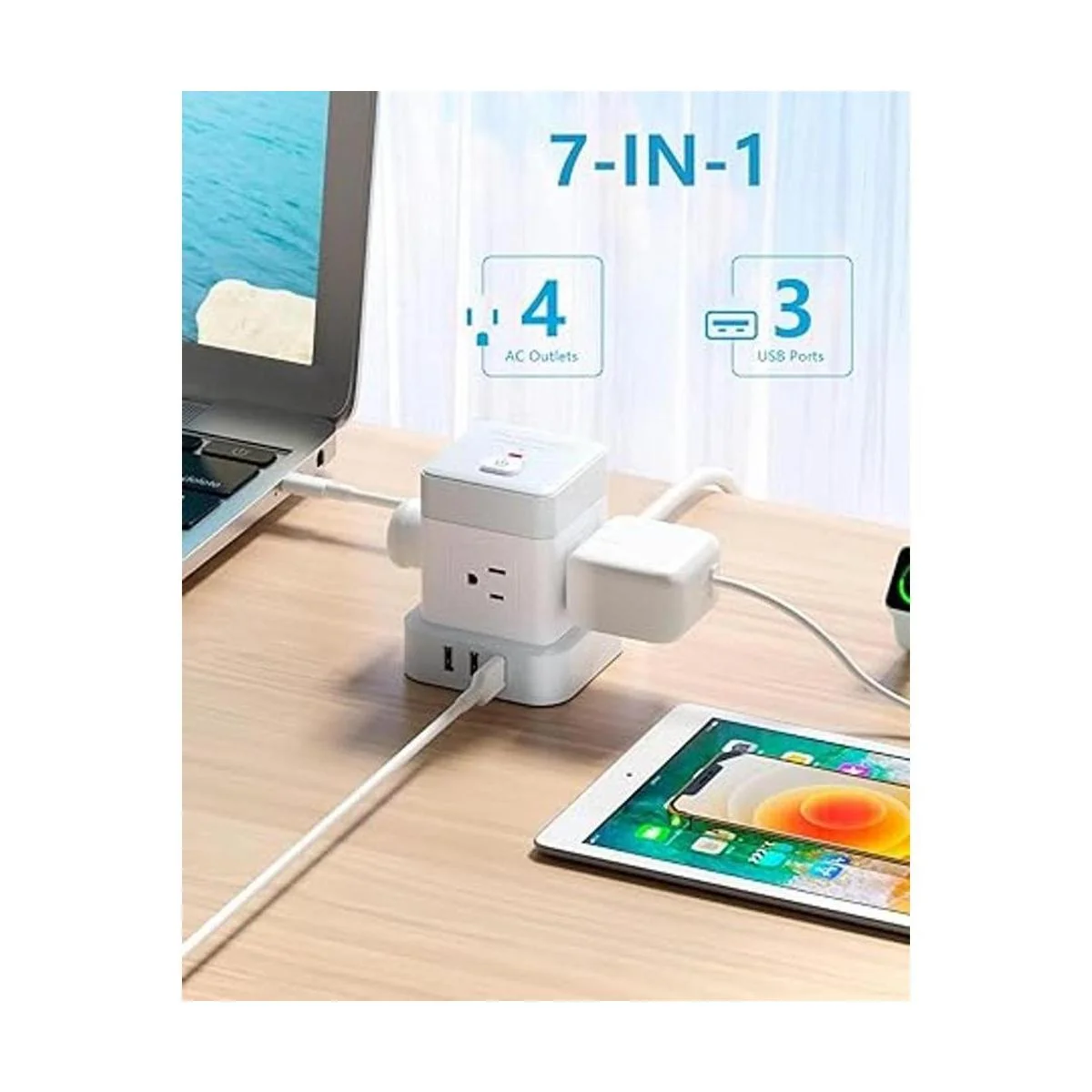 7 en 1 con cargador USB inteligente: 3 puertos USB 5 V/2,4 A y 4 salidas de CA. La regleta de alimentación con USB puede conectar hasta 7 dispositivos simultáneamente en todas las direcciones sin voluminoso bloqueo de enchufes. Proporciona una carga optimizada a dispositivos USB con tecnología IC inteligente, hasta 2.1 A por puerto.