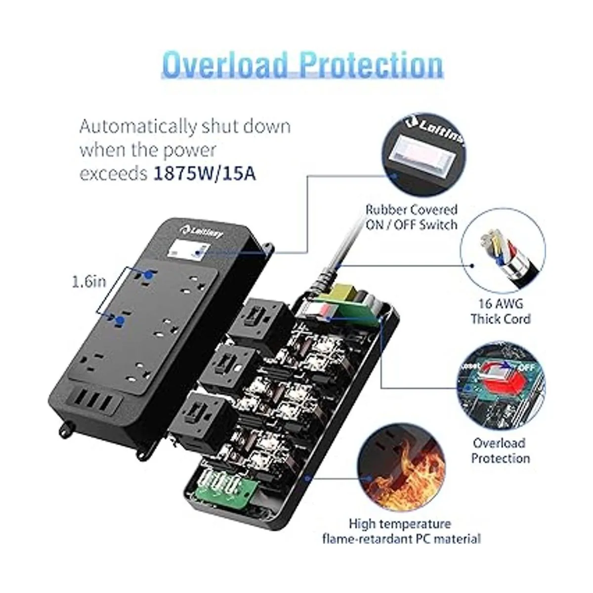 Diseño de seguridad completo: producto de calidad con certificación ETL con cable de extensión resistente de 16 AWG 3 x 1,3 mm certificado UL. El interruptor de circuito integrado se puede apagar automáticamente cuando se sobrecarga 1875 W, evitando el fuego causado por sobrecalentamiento. Protección del medio ambiente y carcasa de policarbonato resistente al fuego con retardante de llama a 1382 F que hace que sea más duradero y una vida útil más larga.