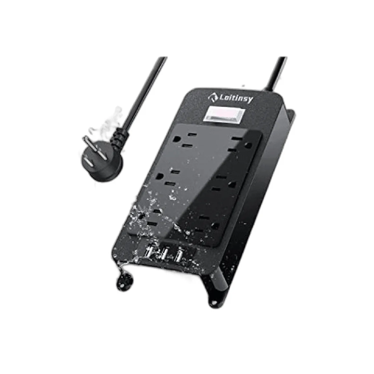 Regleta de alimentación de 6 CA resistente a la intemperie: es impermeable y eléctrico a prueba de golpes se puede utilizar de forma segura en interiores y exteriores en lluvia y truenos, lo que puede evitar cortocircuitos o descargas eléctricas y otros problemas de seguridad causados por salpicaduras de agua o rayos.